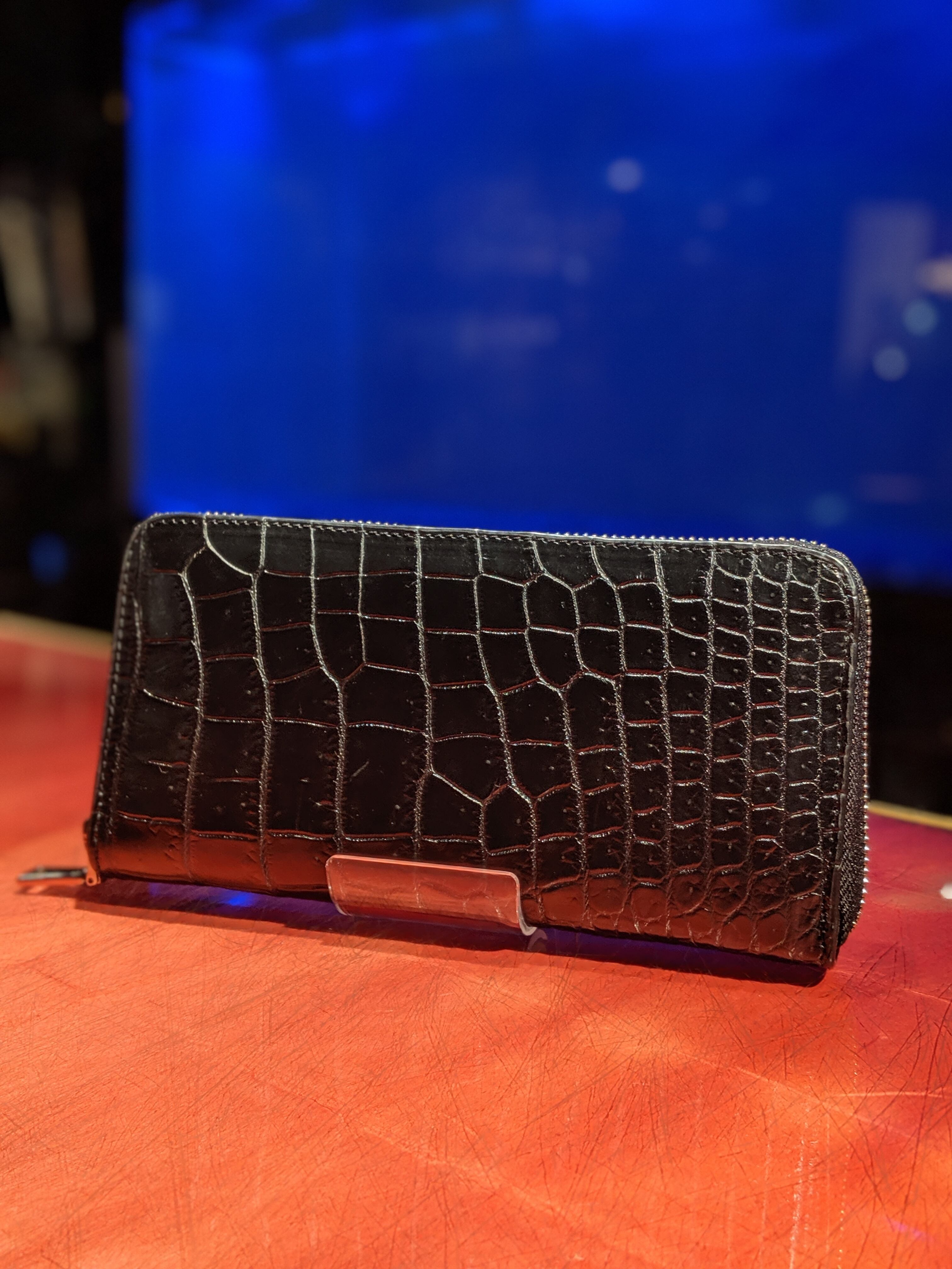 クロコダイル一枚革を贅沢に使用したラウンドジップロングウォレット