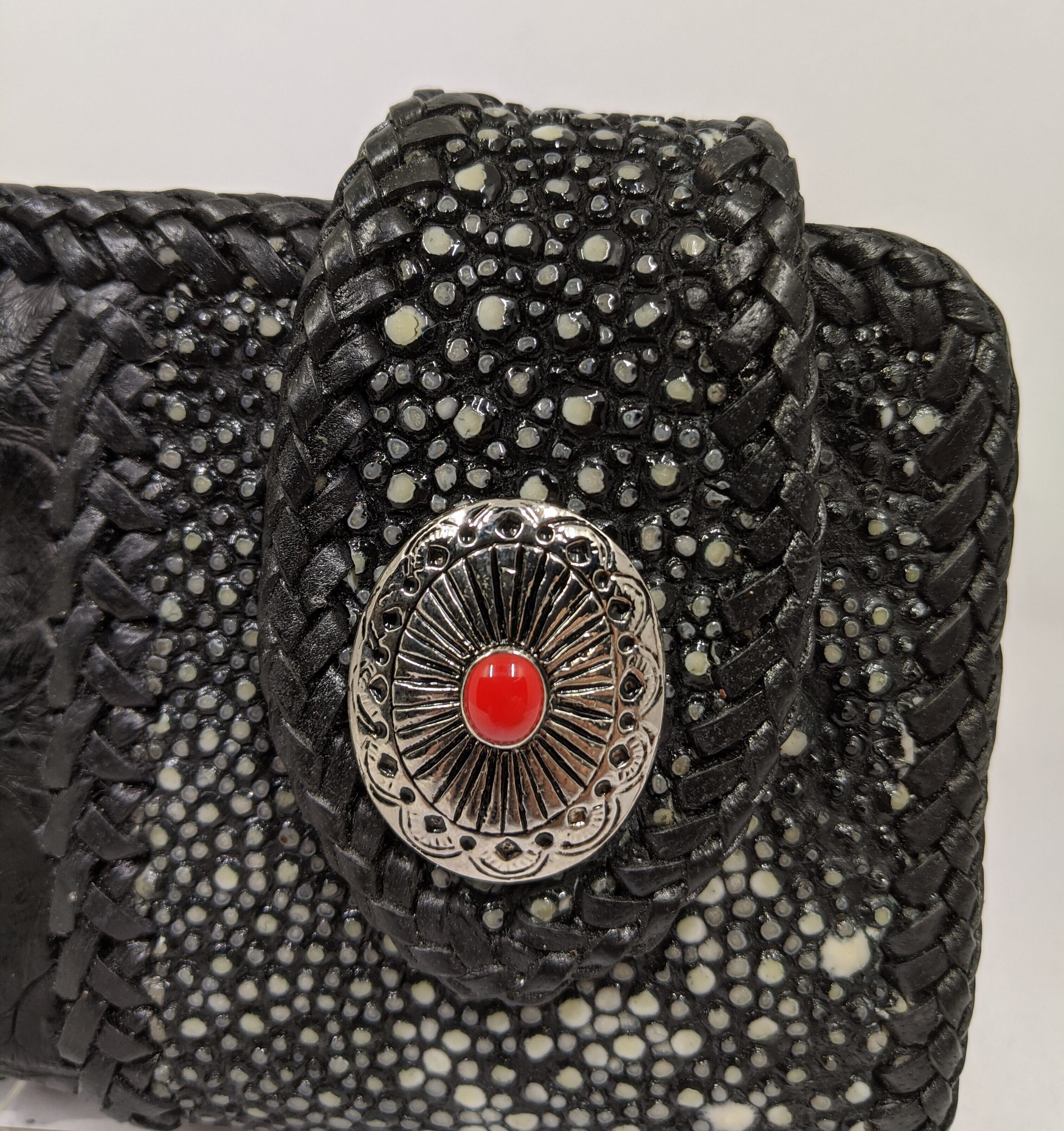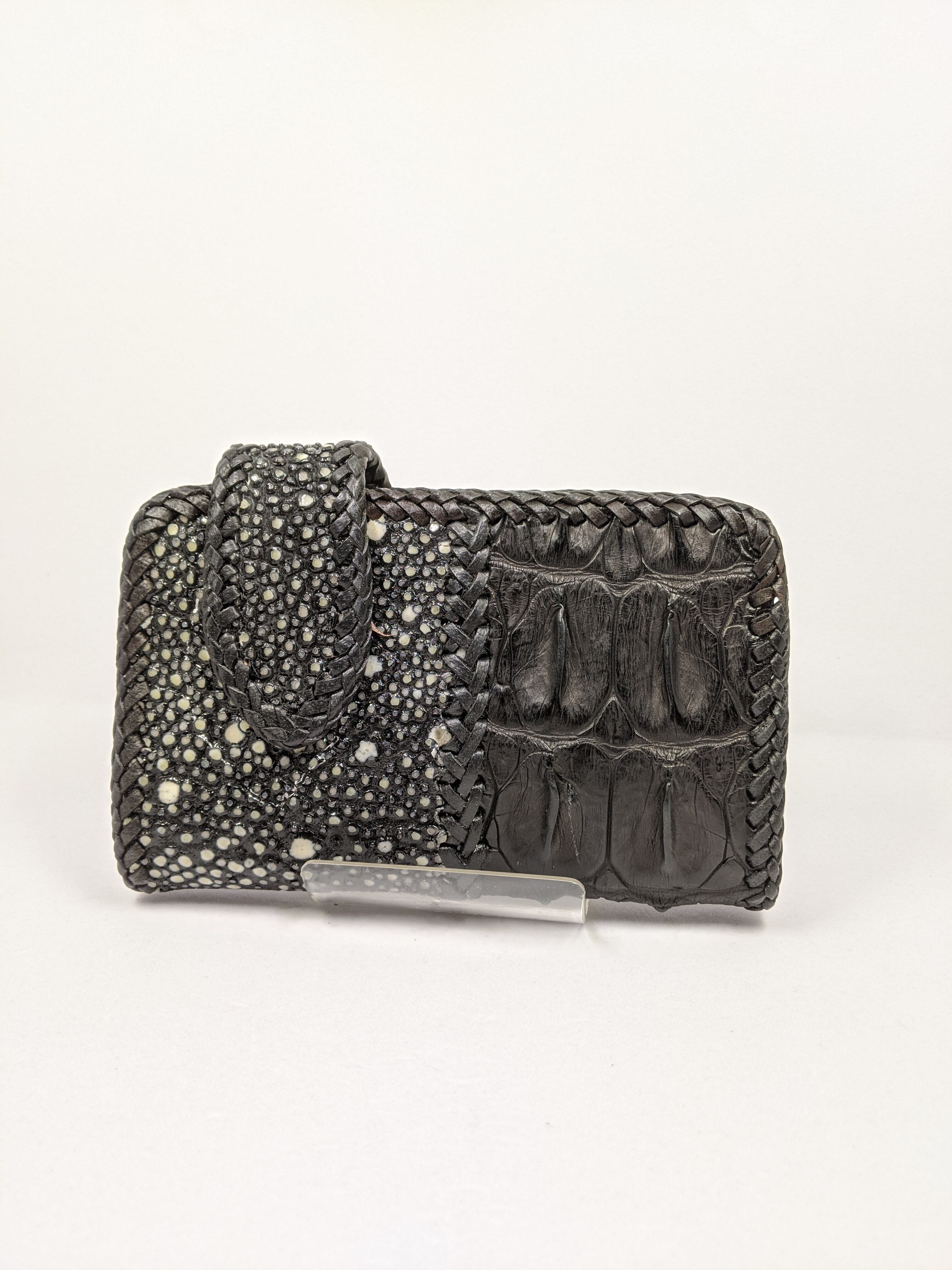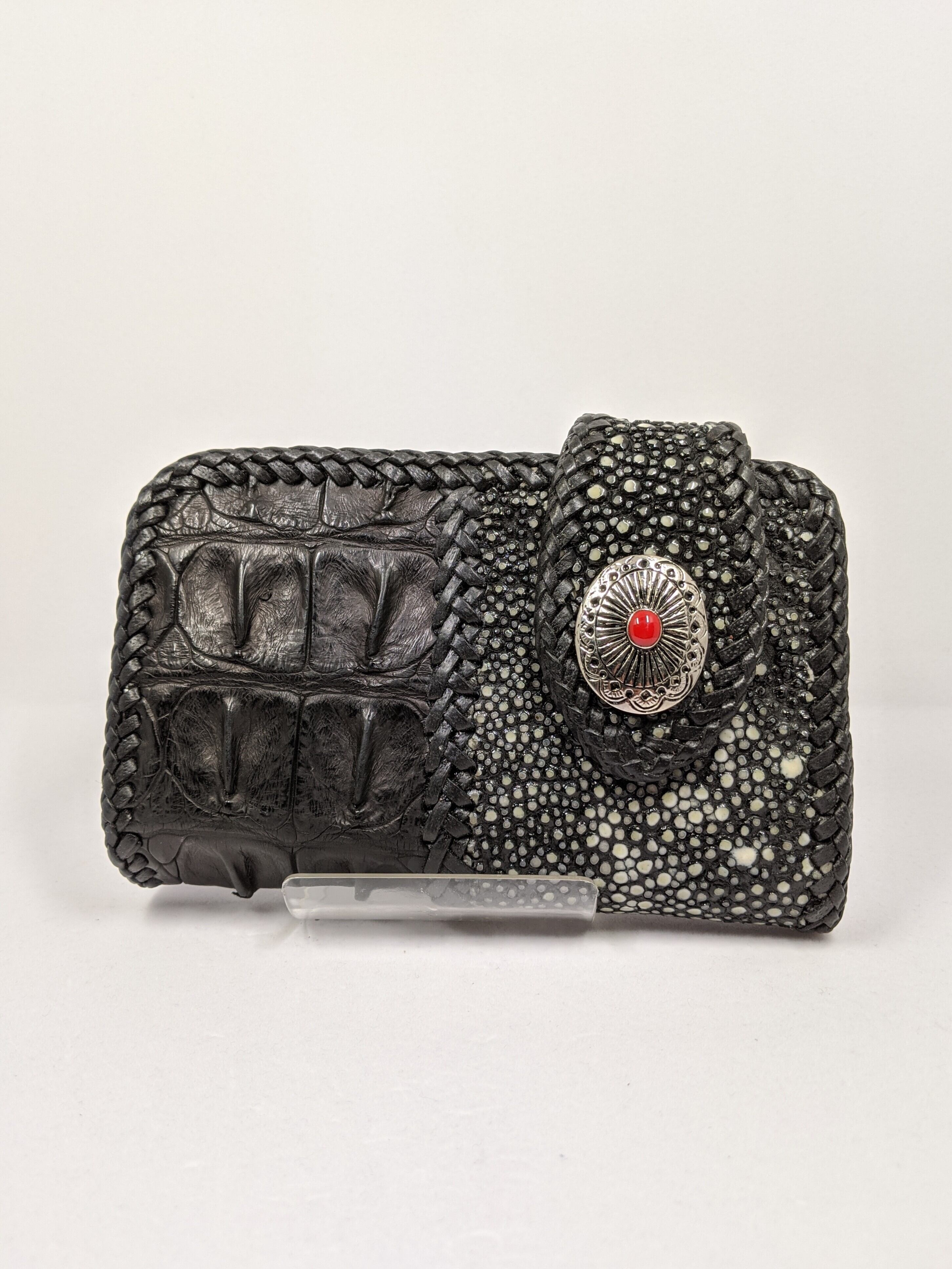 クロコダイルレザーとスティングレイを大胆に使ったロングウォレットです。