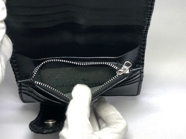 コインポケットやカードポケット、コンチョ型のスナップボタンも付属しており実用性にも優れています。