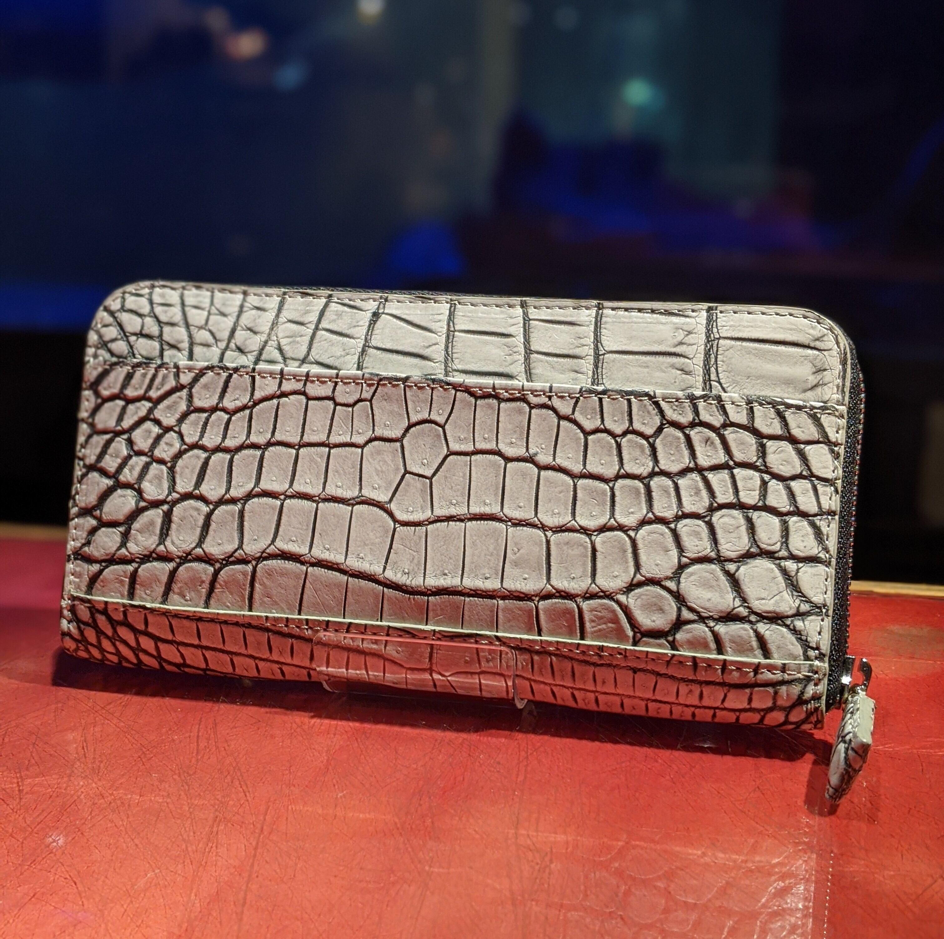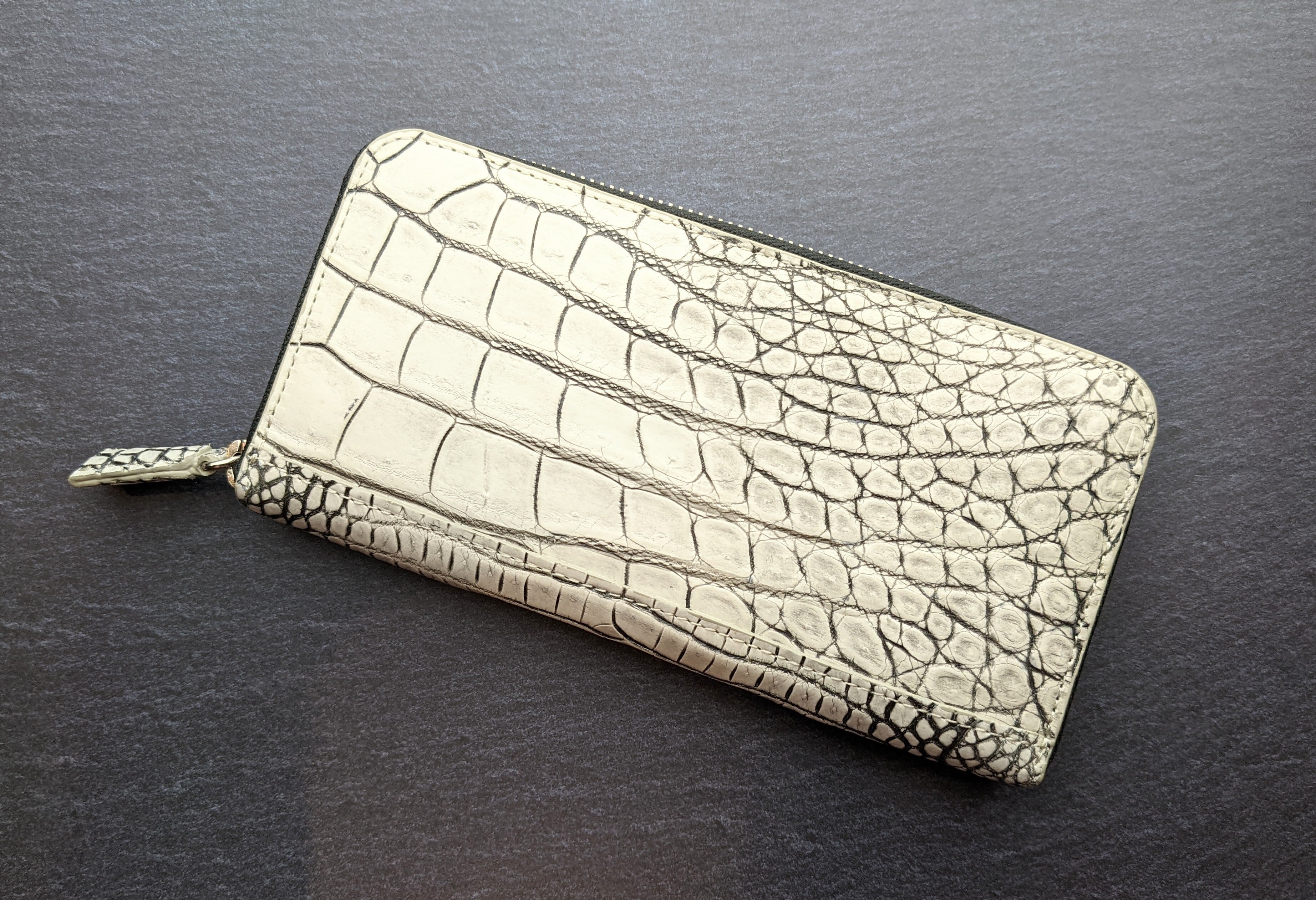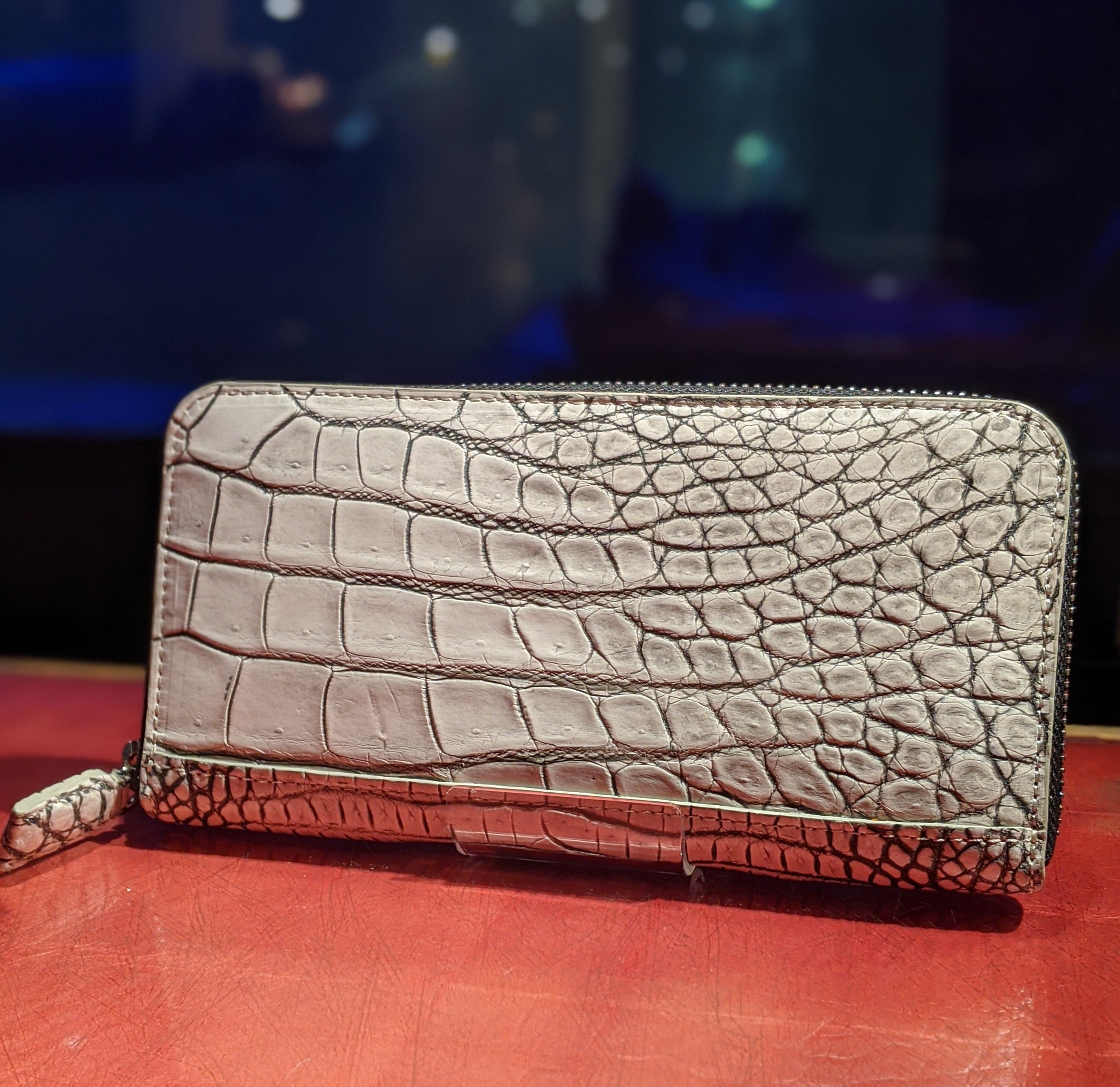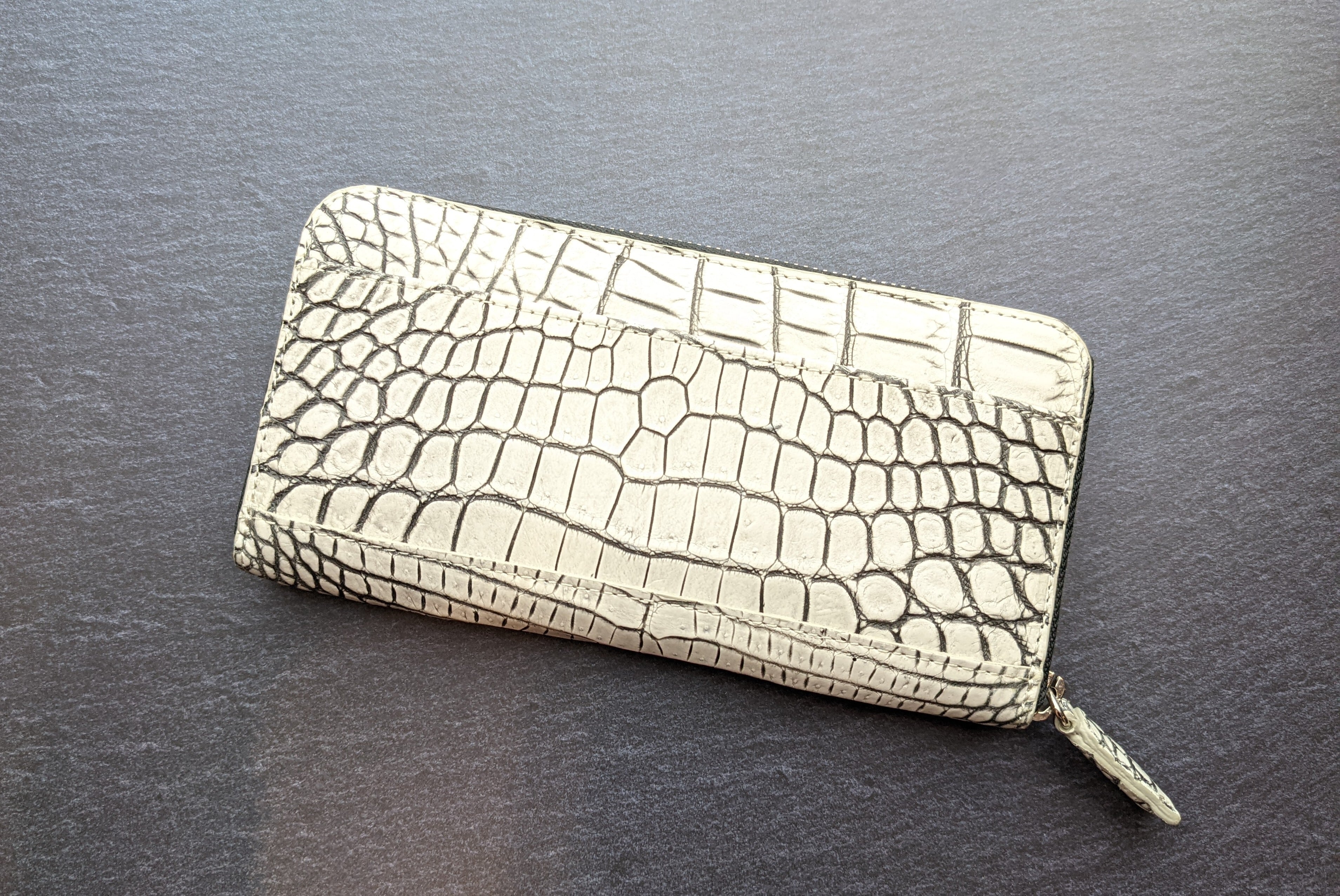 クロコダイルレザーを贅沢に使用したラウンドジップロングウォレット