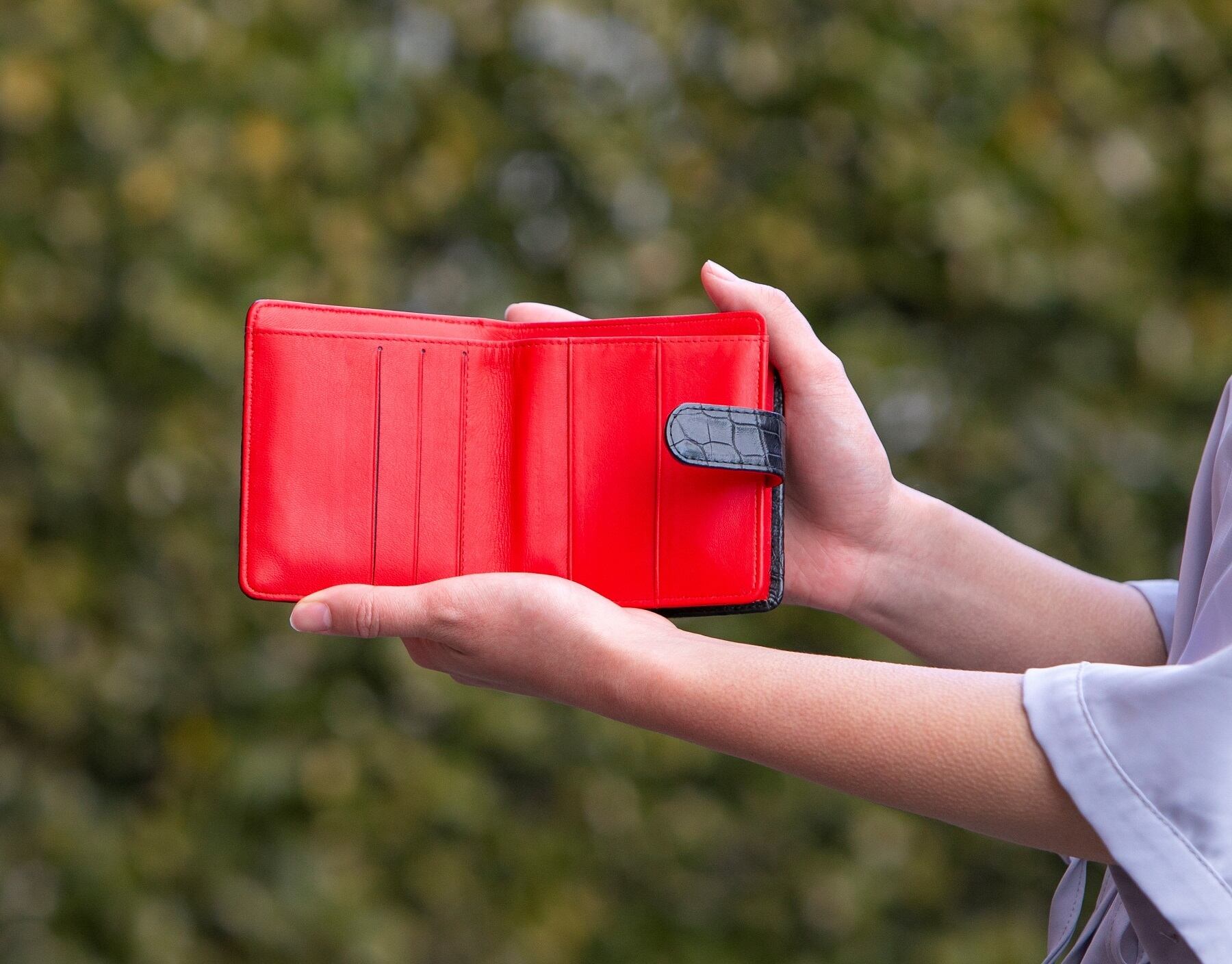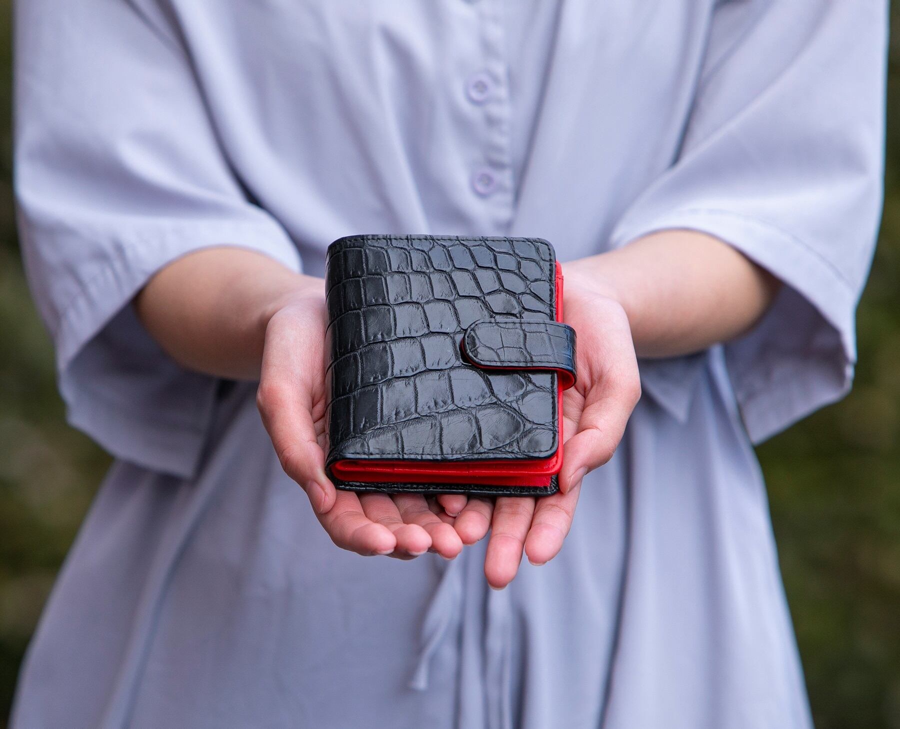 クロコダイル一枚革を使用した二つ折りウォレットです