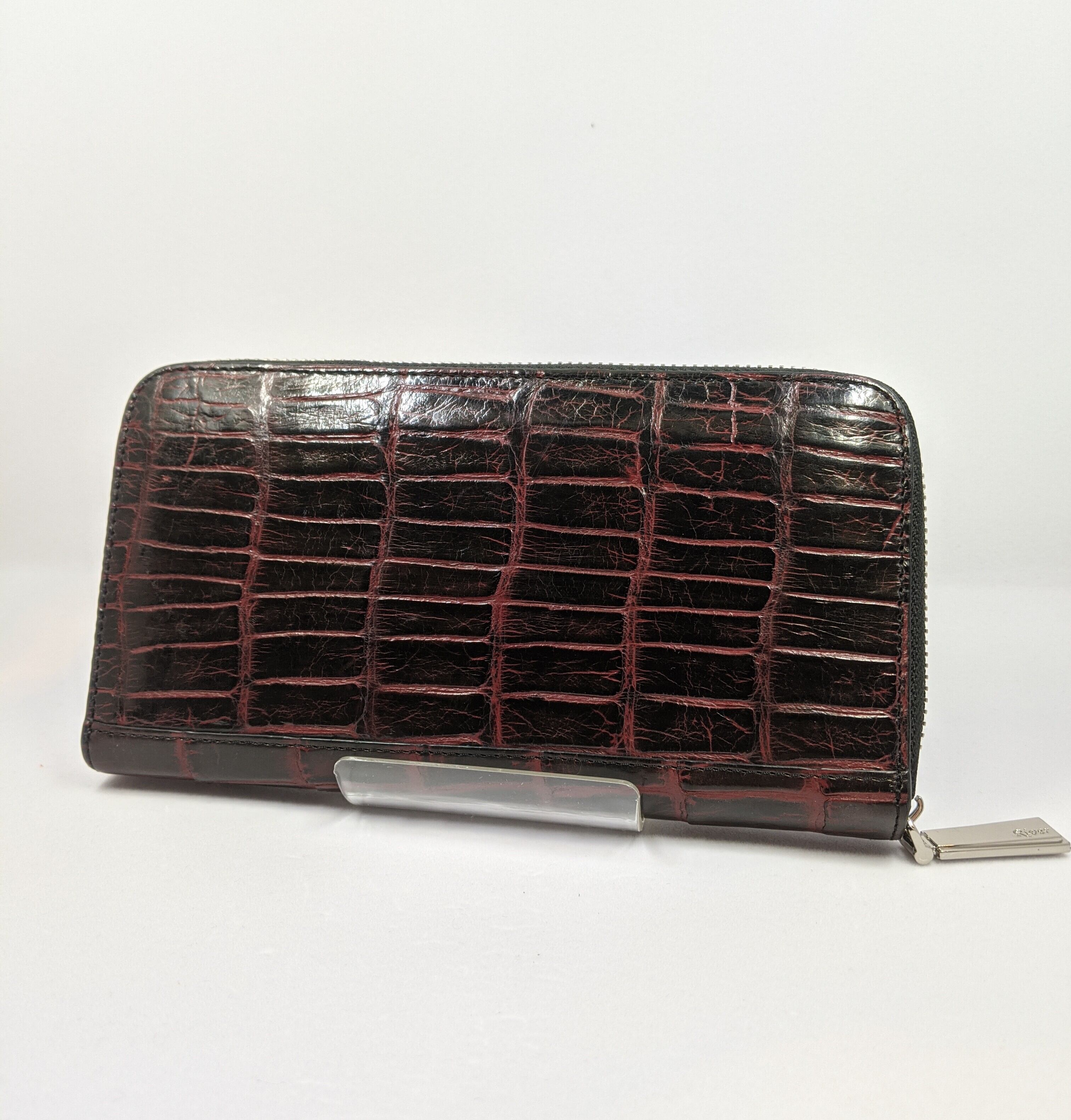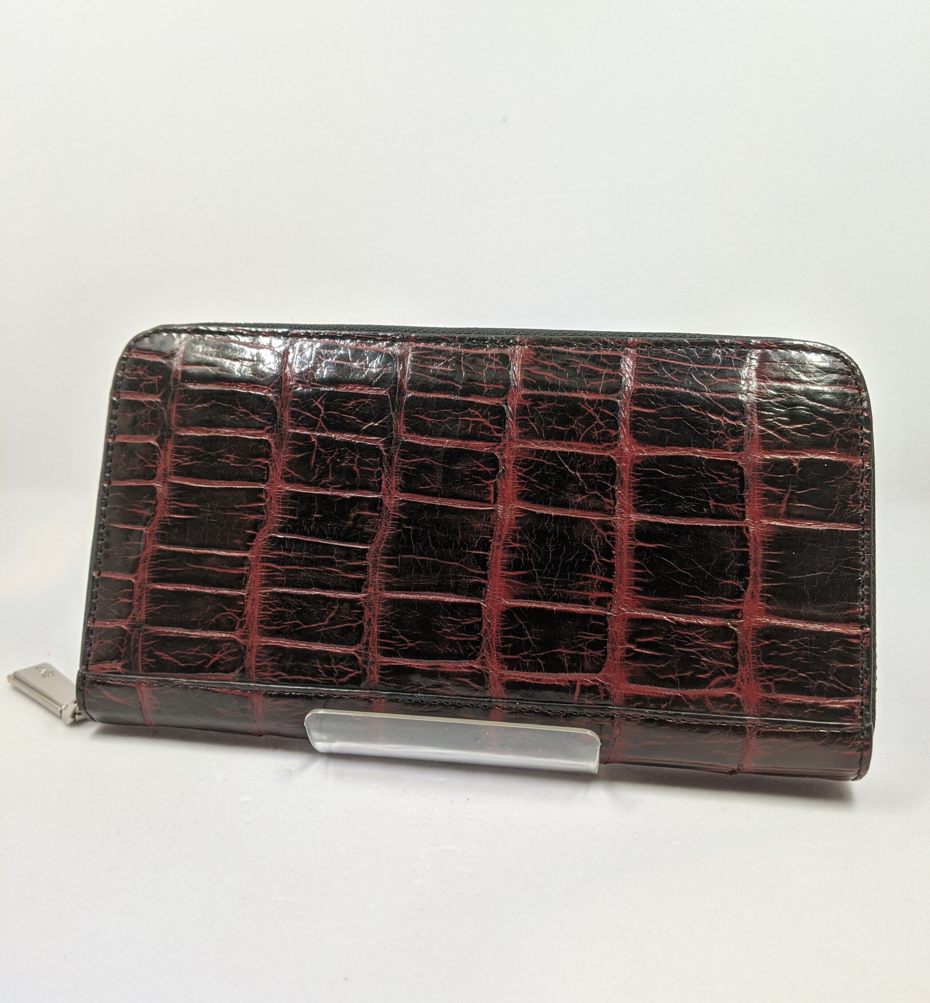 クロコダイルレザーを使用したラウンドジップロングウォレット