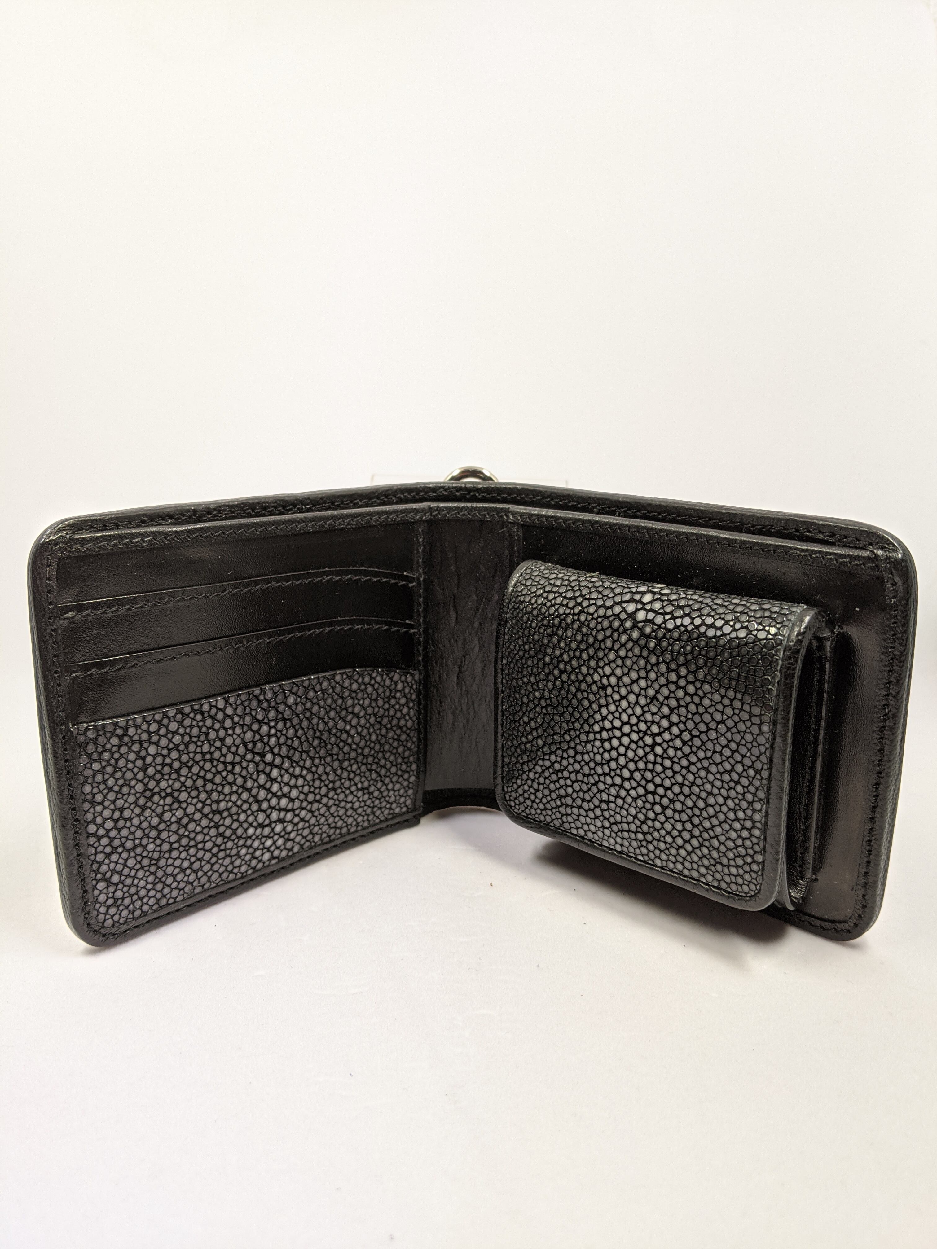 内側にもスティングレイを使用。Dカンがついていますのでウォレットチェーン等も取り付け可能です。