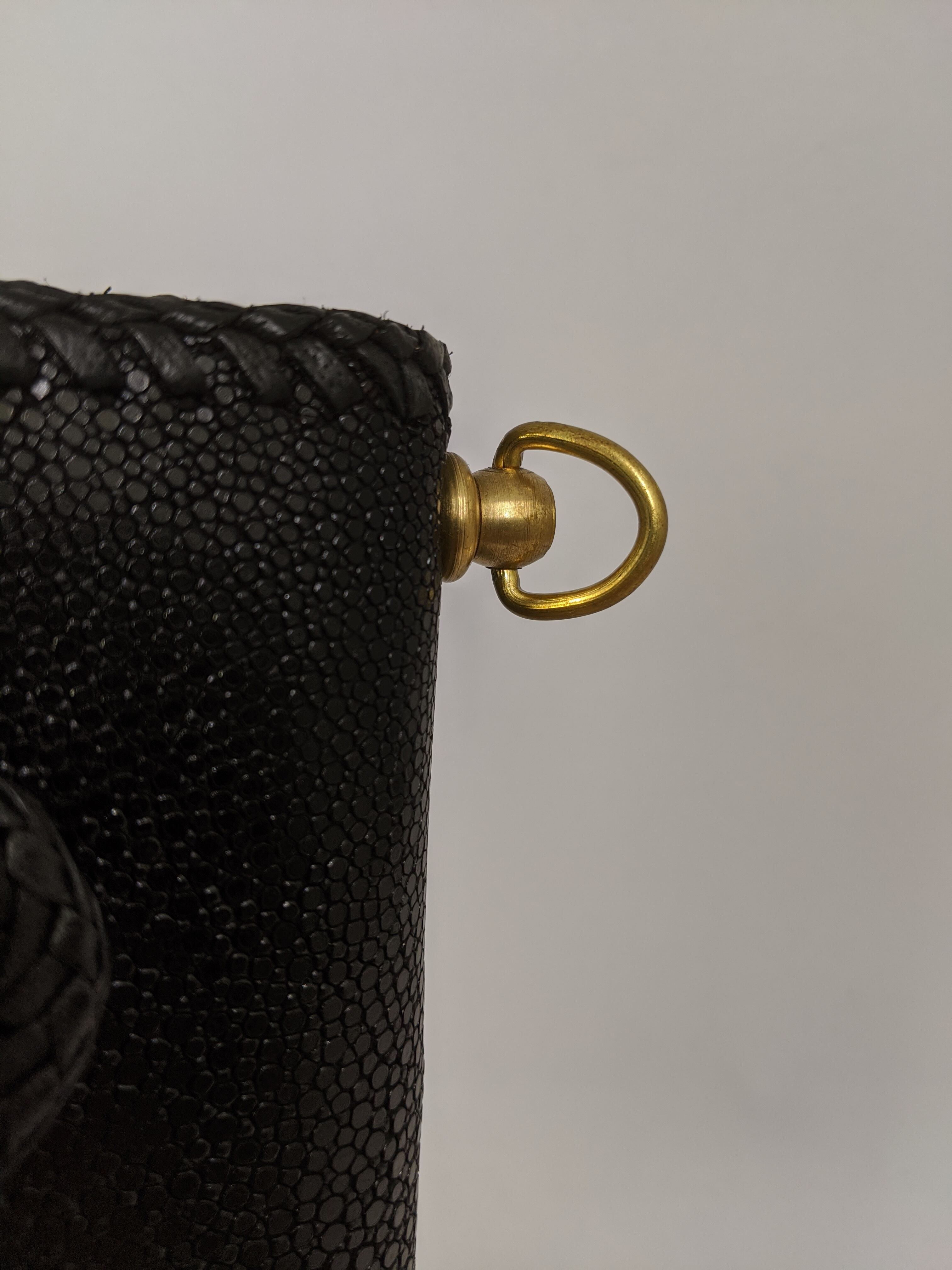 バイカーズウォレットの特徴でもあるフラップボタンにDカンも付属しています。