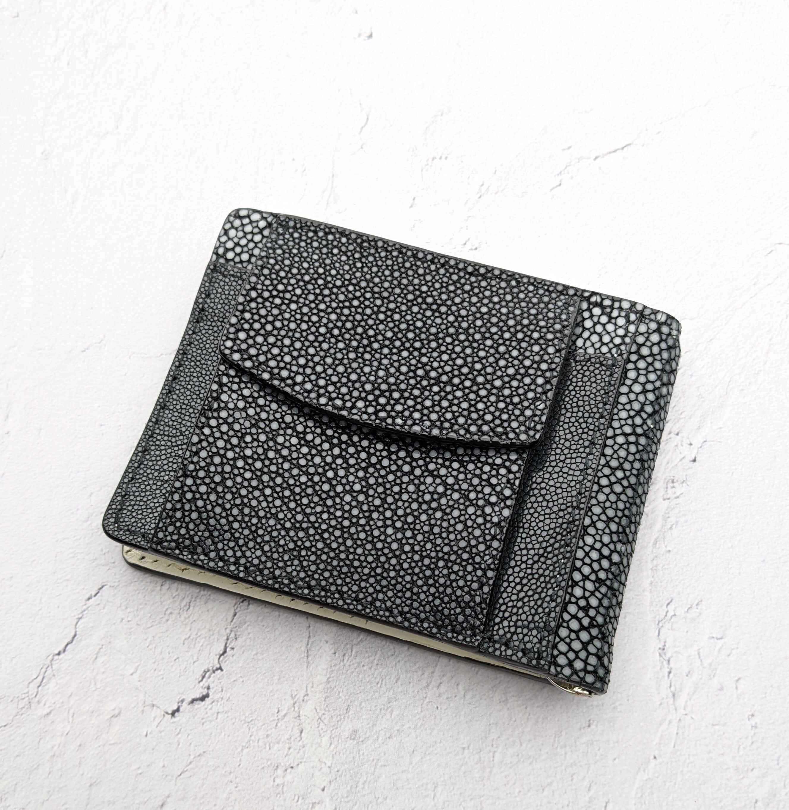 スティングレイ 二つ折り財布 マネークリップ ブラック|会計がスマートに変わるエイ革ショートウォレット 本革 ガルーシャ レザー メンズ レディース ハンドメイド 職人手作り 本物保証 プレゼント ギフト 父の日 母の日 クリスマス 10000217