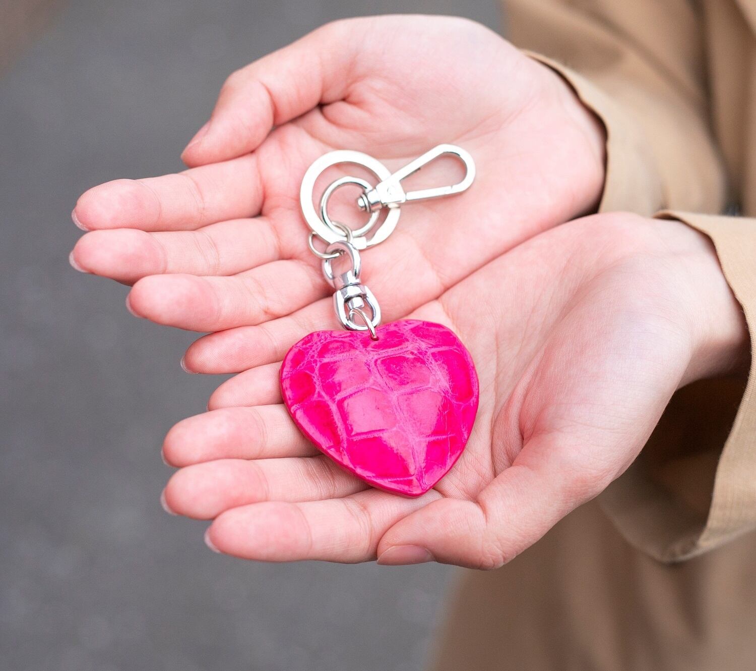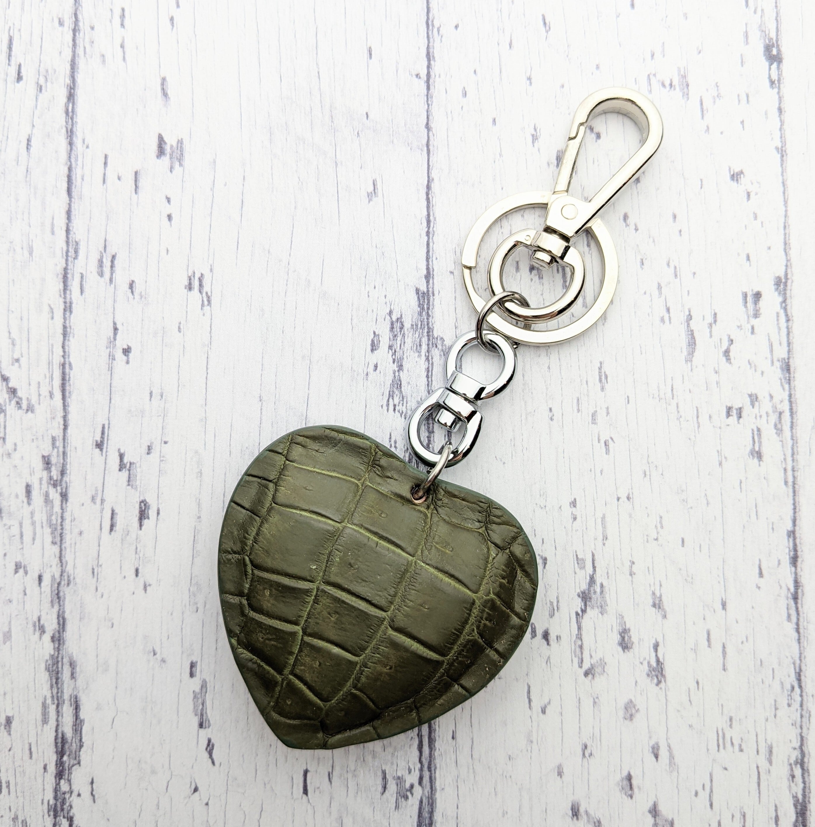 「安物はもう卒業」その手元に、本物だけの輝きを。クロコダイル キーホルダー ハート 緑 グリーン ワニ革 本革 職人手作り【偽物全額返金保証】レディース チャーム ギフトに最適 プレゼント 記念日 誕生日 ペア お揃い 10000025
