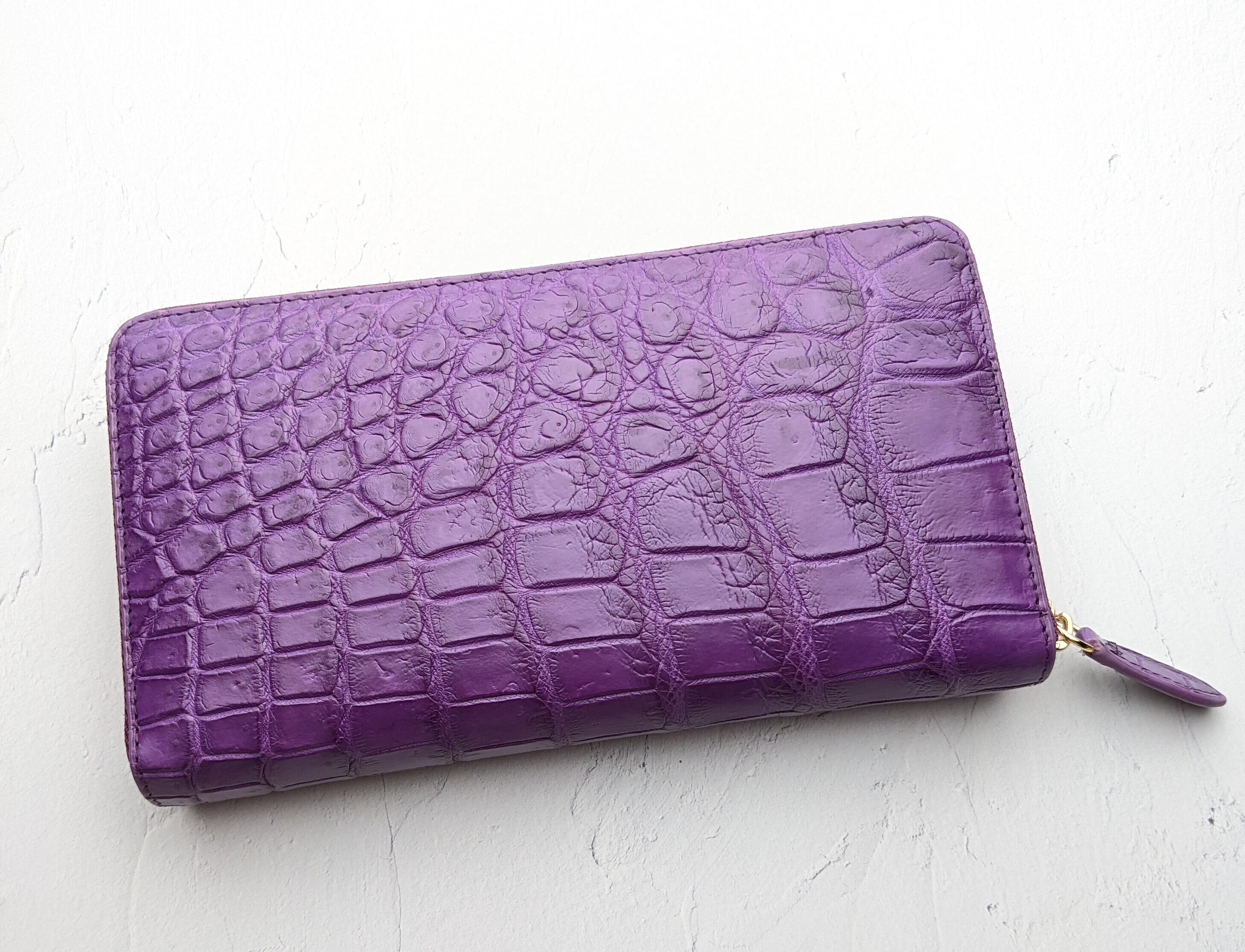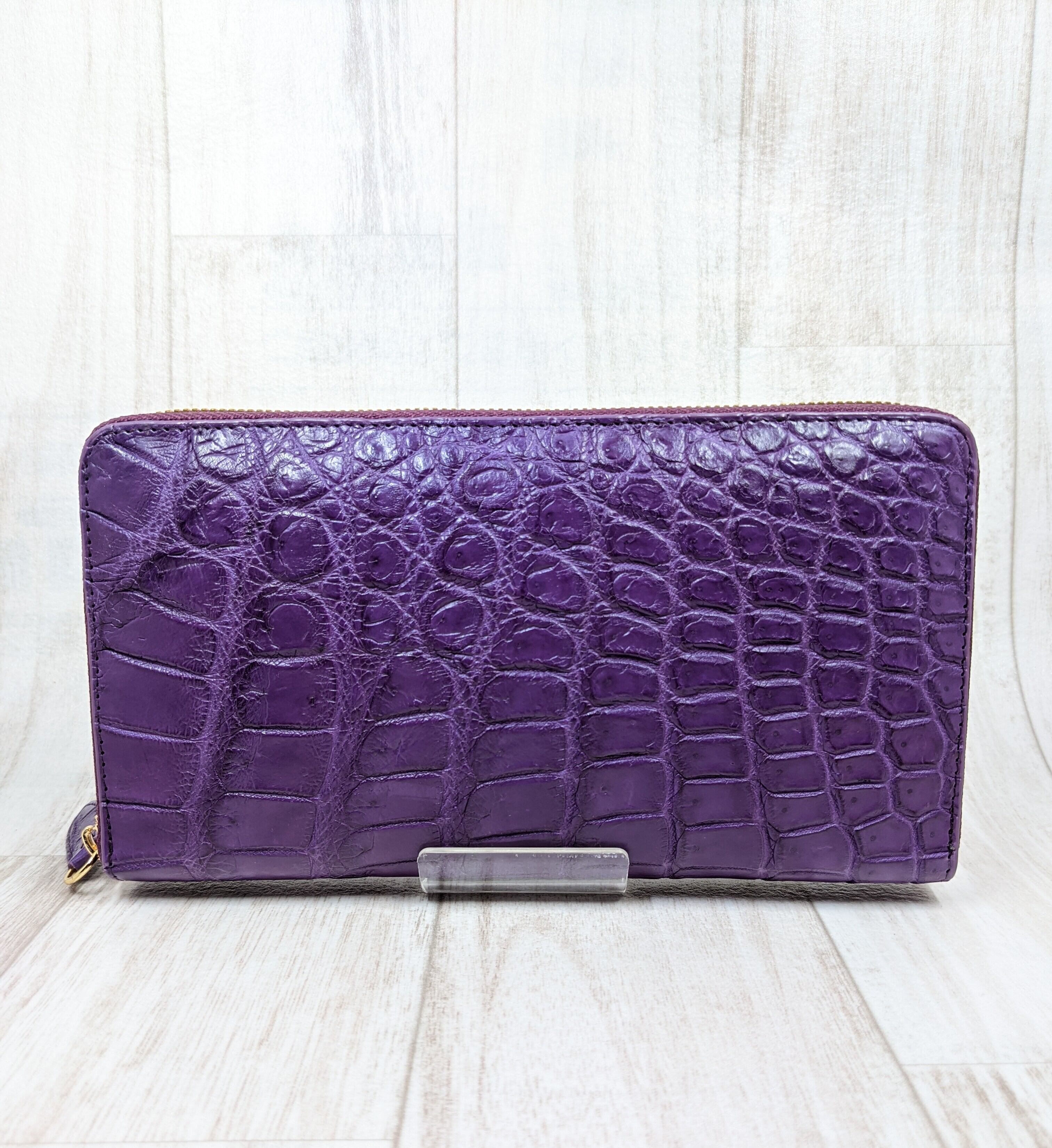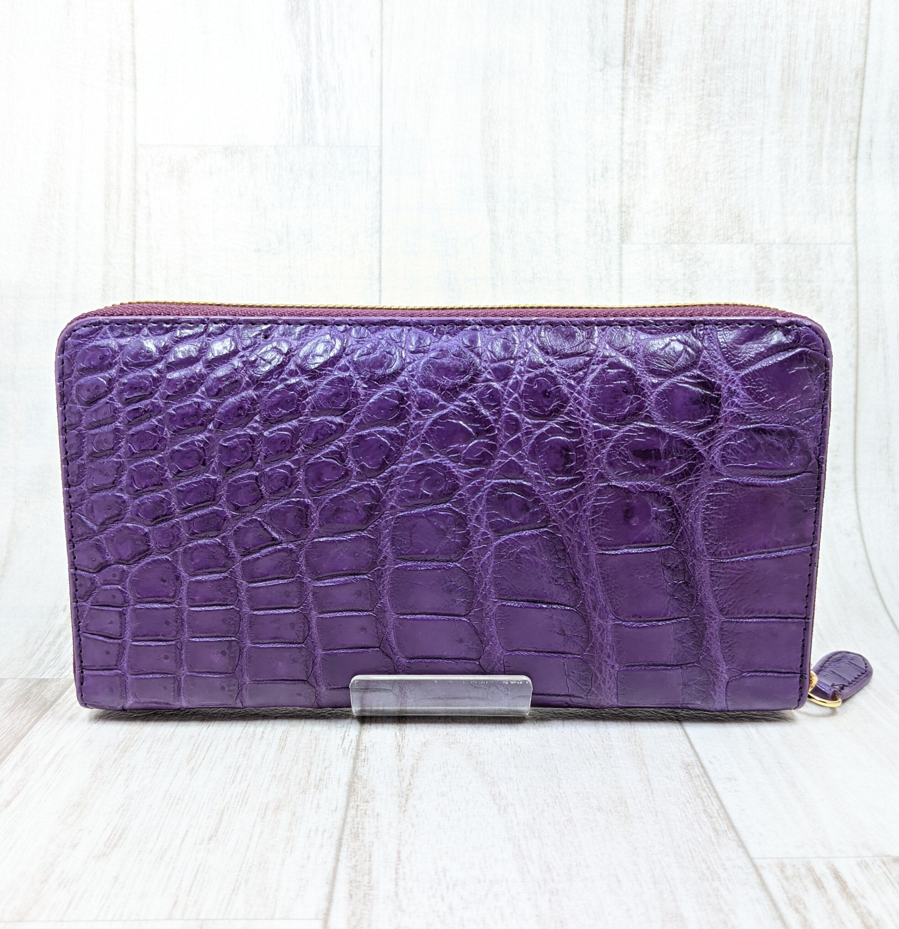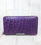 Lサイズ【クロコダイル】 ラウンドファスナー ロングウォレット 長財布 パープル CWL8