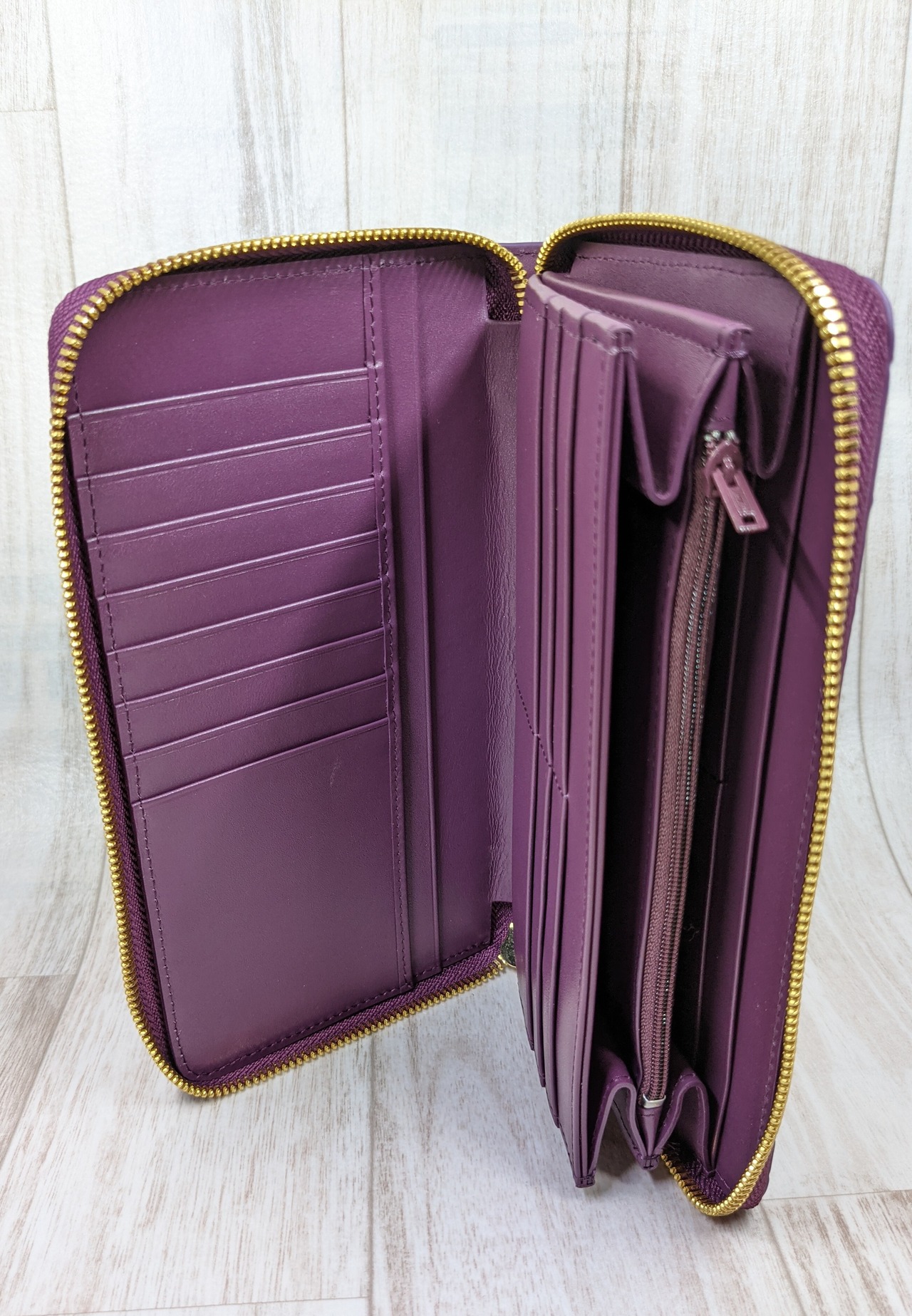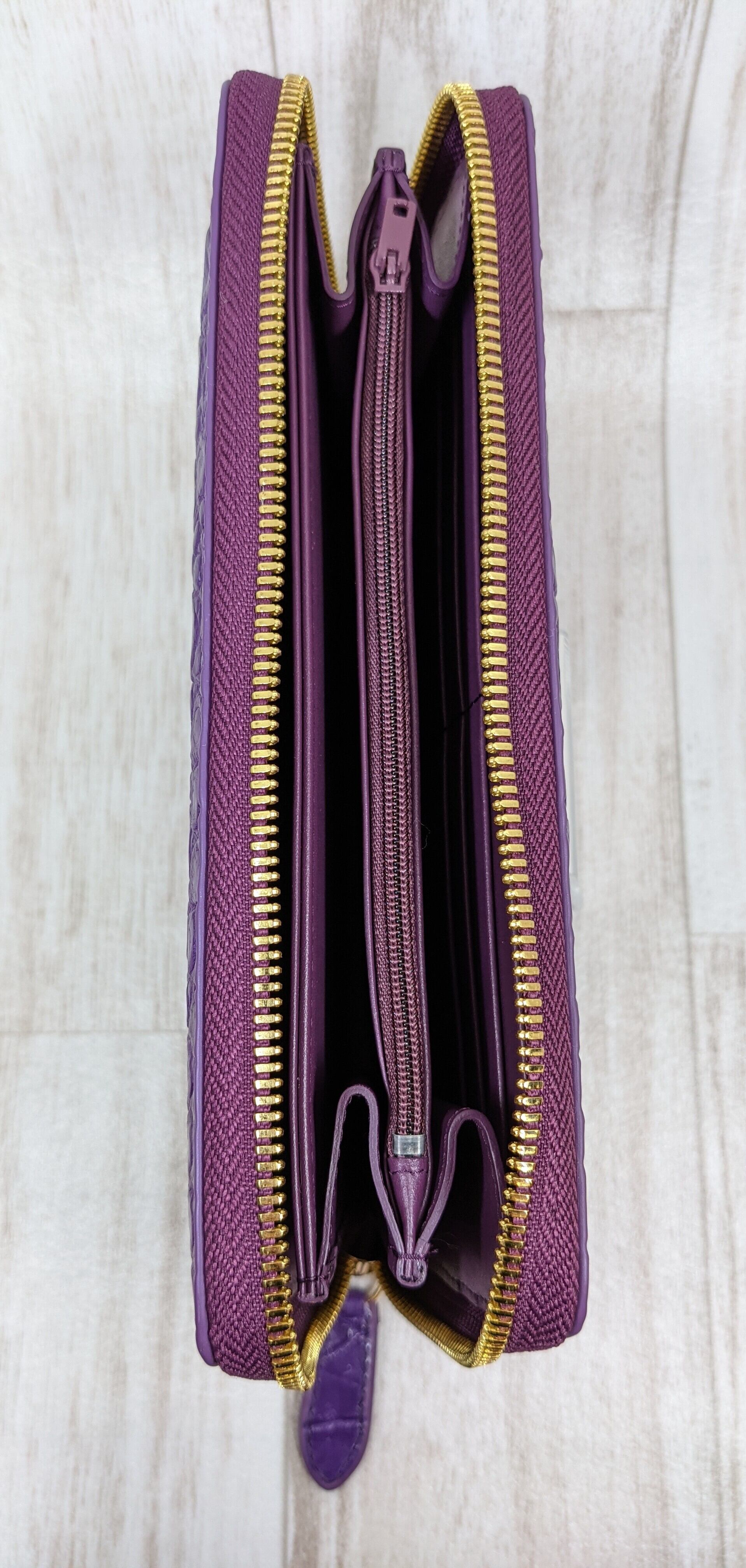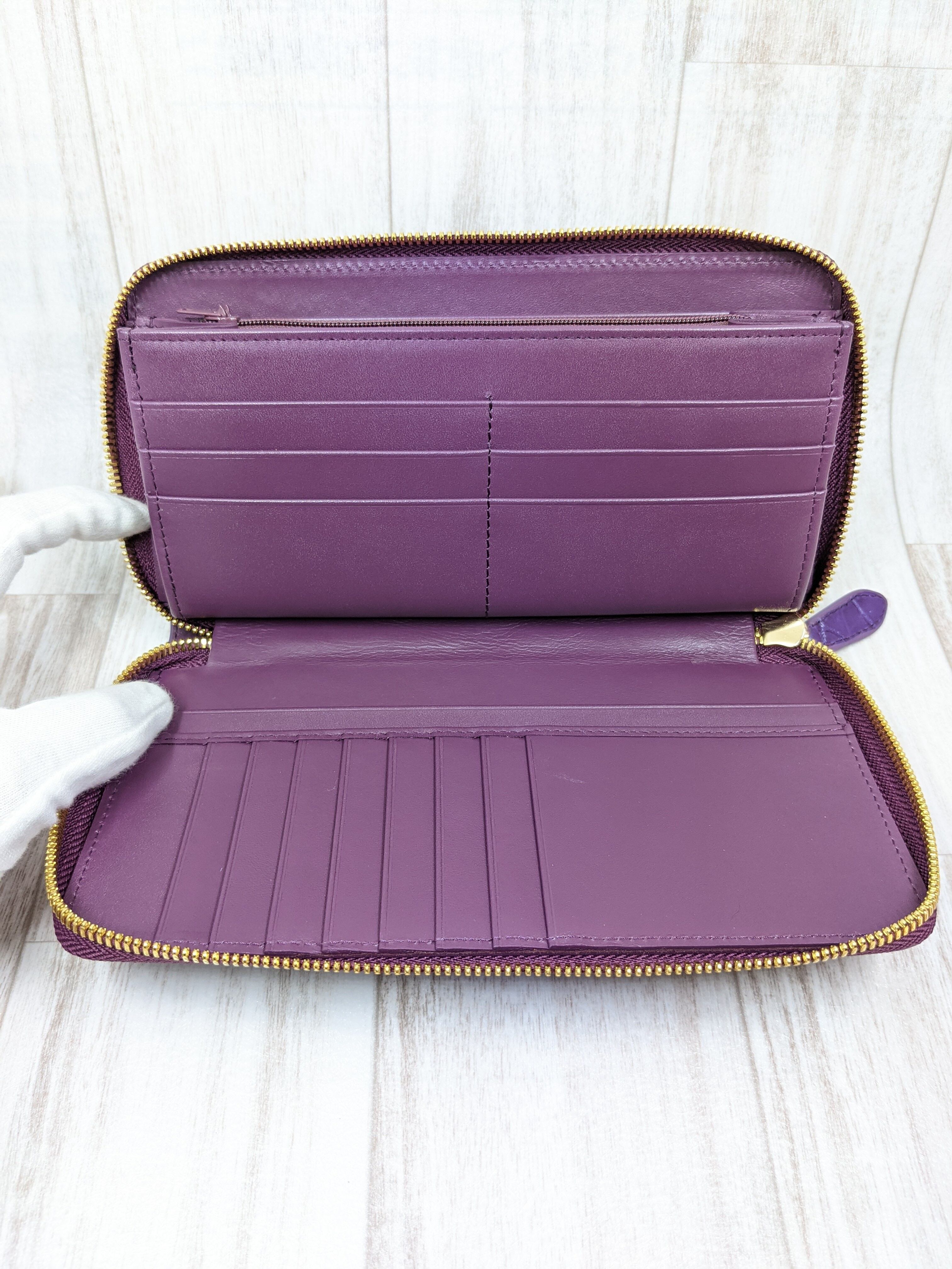 Lサイズ【クロコダイル】 ラウンドファスナー ロングウォレット 長財布 パープル CWL8