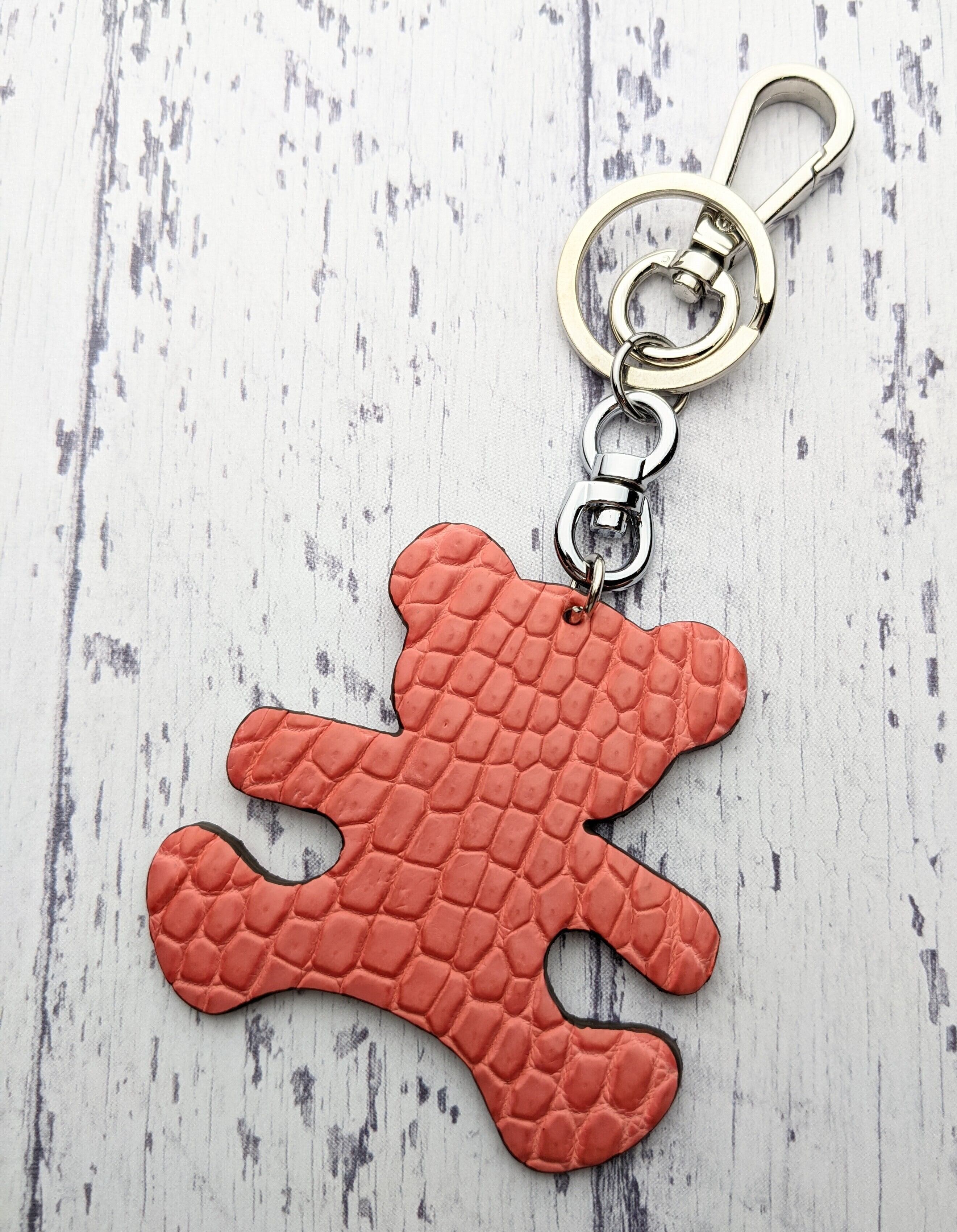可愛いだけじゃ物足りない大人へ【本物素材で差がつく】クロコダイル キーホルダー クマ サーモンピンク|高級 ワニ革 本革 レディース チャーム キーリング ギフト プレゼント 職人 ハンドメイド 本物保証 お揃い ご褒美 個性派 10000090