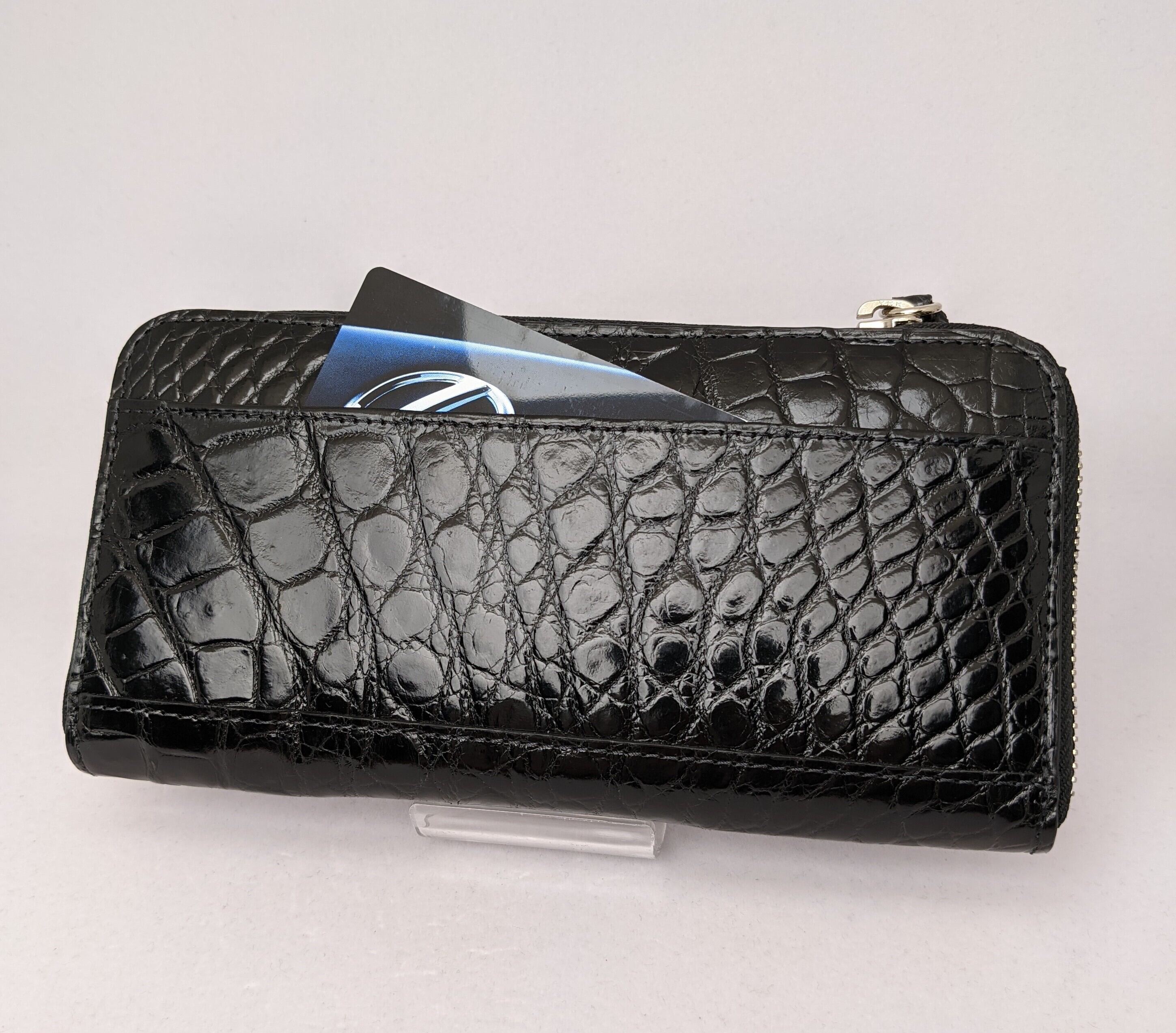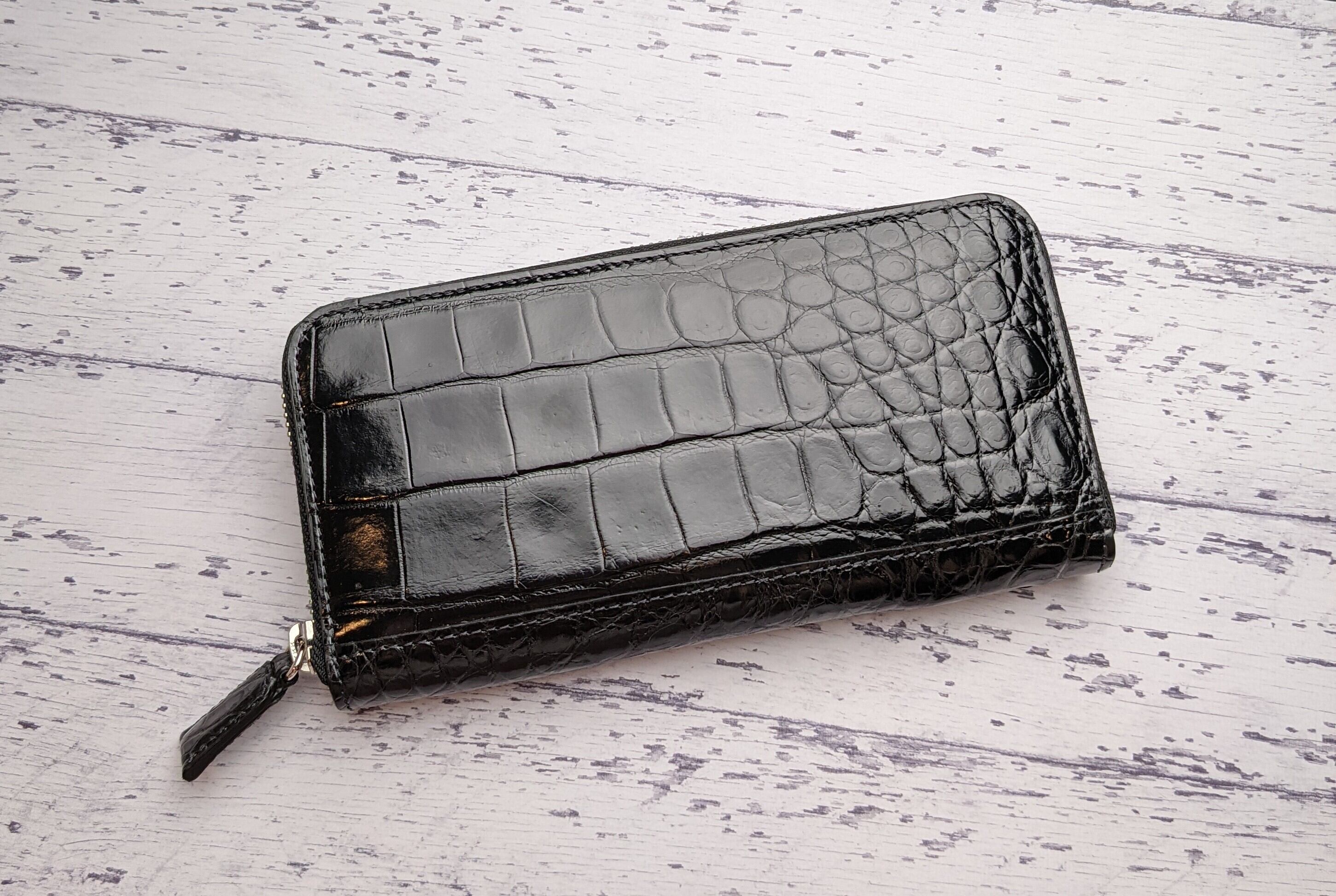 クロコダイルレザーを使用したラウンドジップロングウォレット