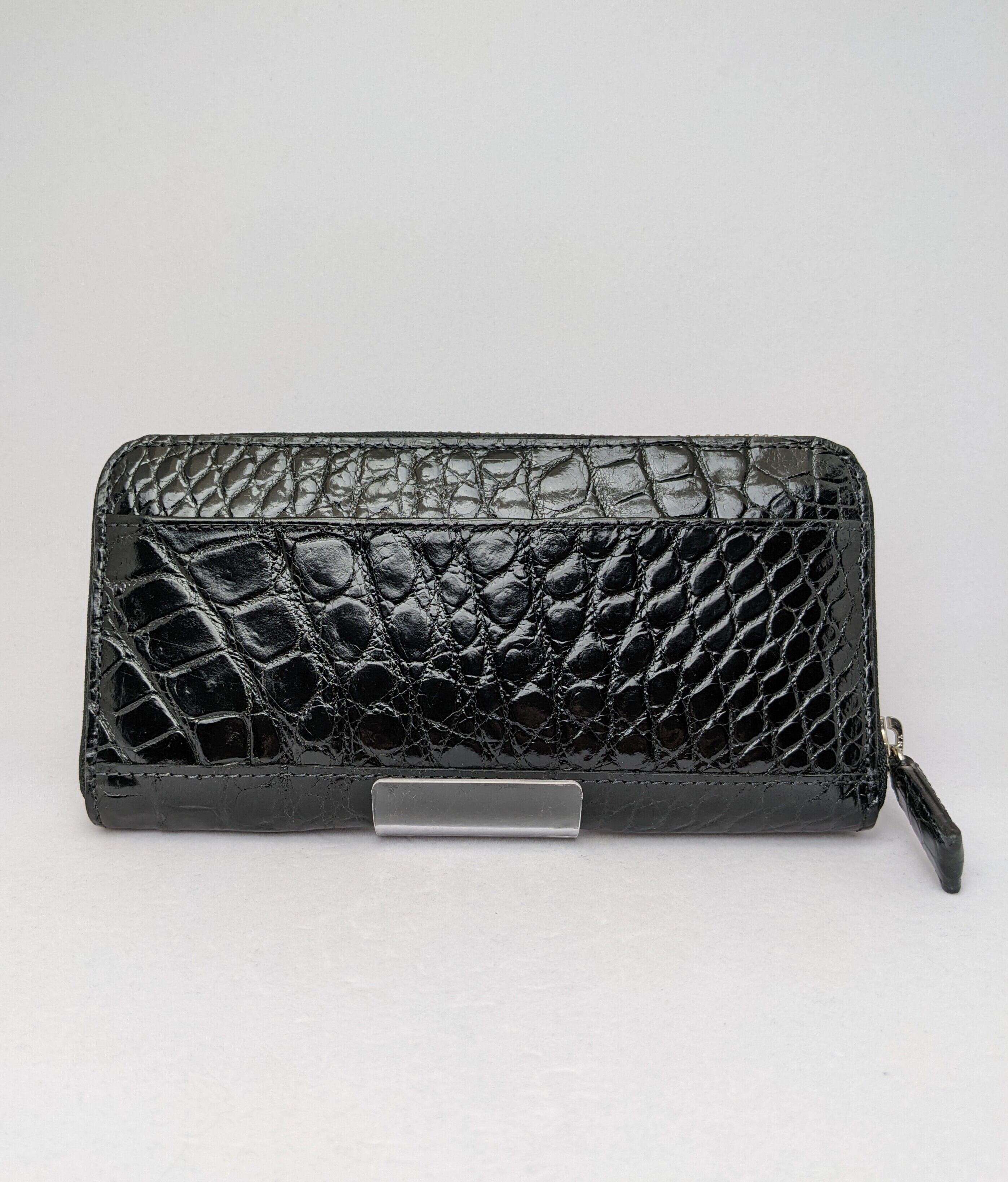 【クロコダイル】 ラウンドファスナー ロングウォレット 長財布 ブラック CLW112