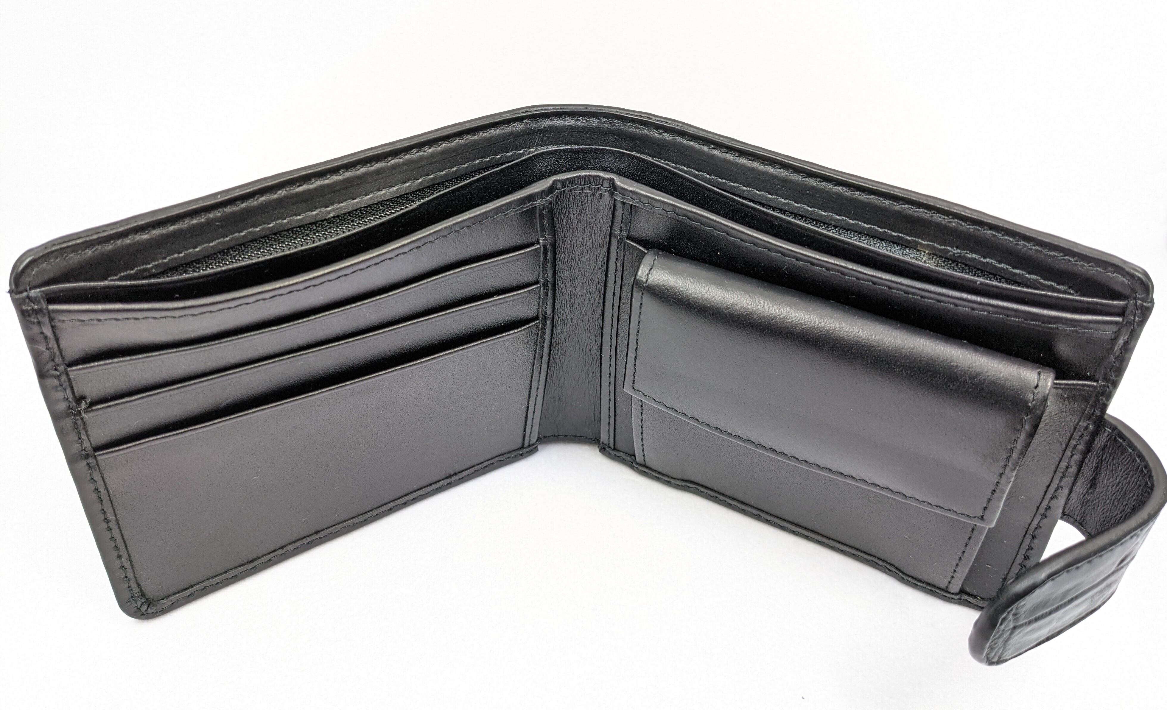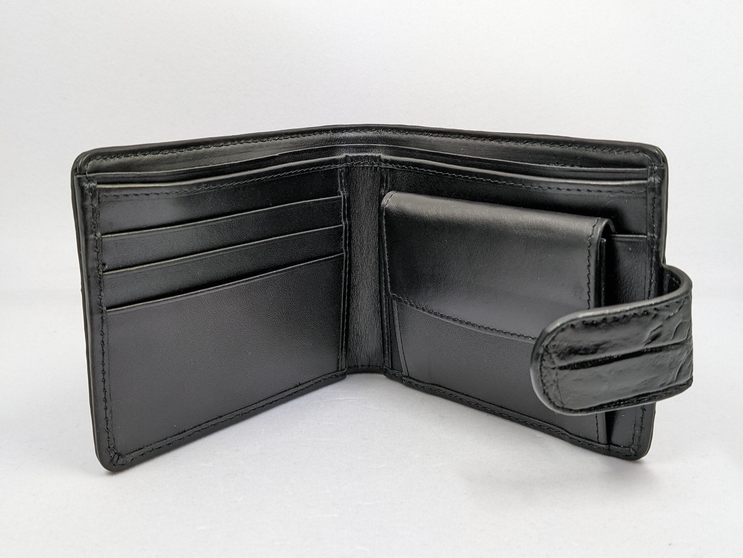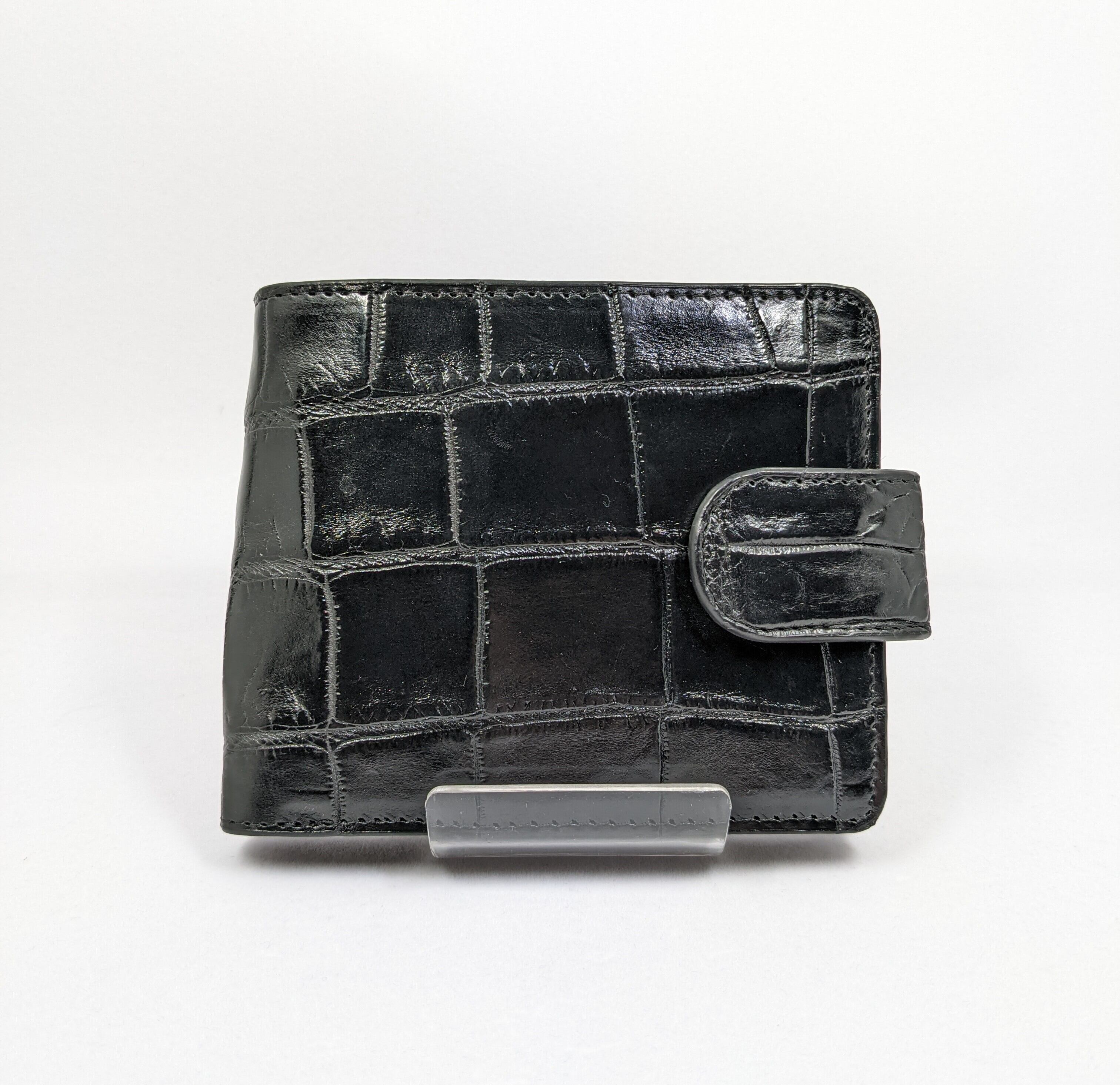 【デキる大人の男は財布で差をつける】ポケットが膨らむ財布の悩みから解放。クロコダイル本革 二つ折り財布 ブラック|熟練職人の手作り ミニ財布 コンパクトなのに大容量 スナップボタン式 メンズ レディース 本物保証 ギフト プレゼント 10000102