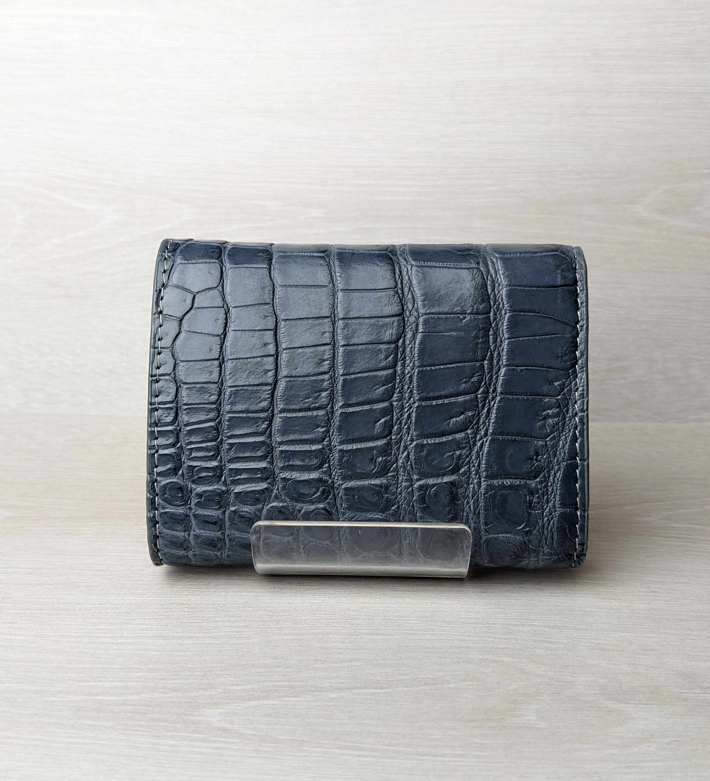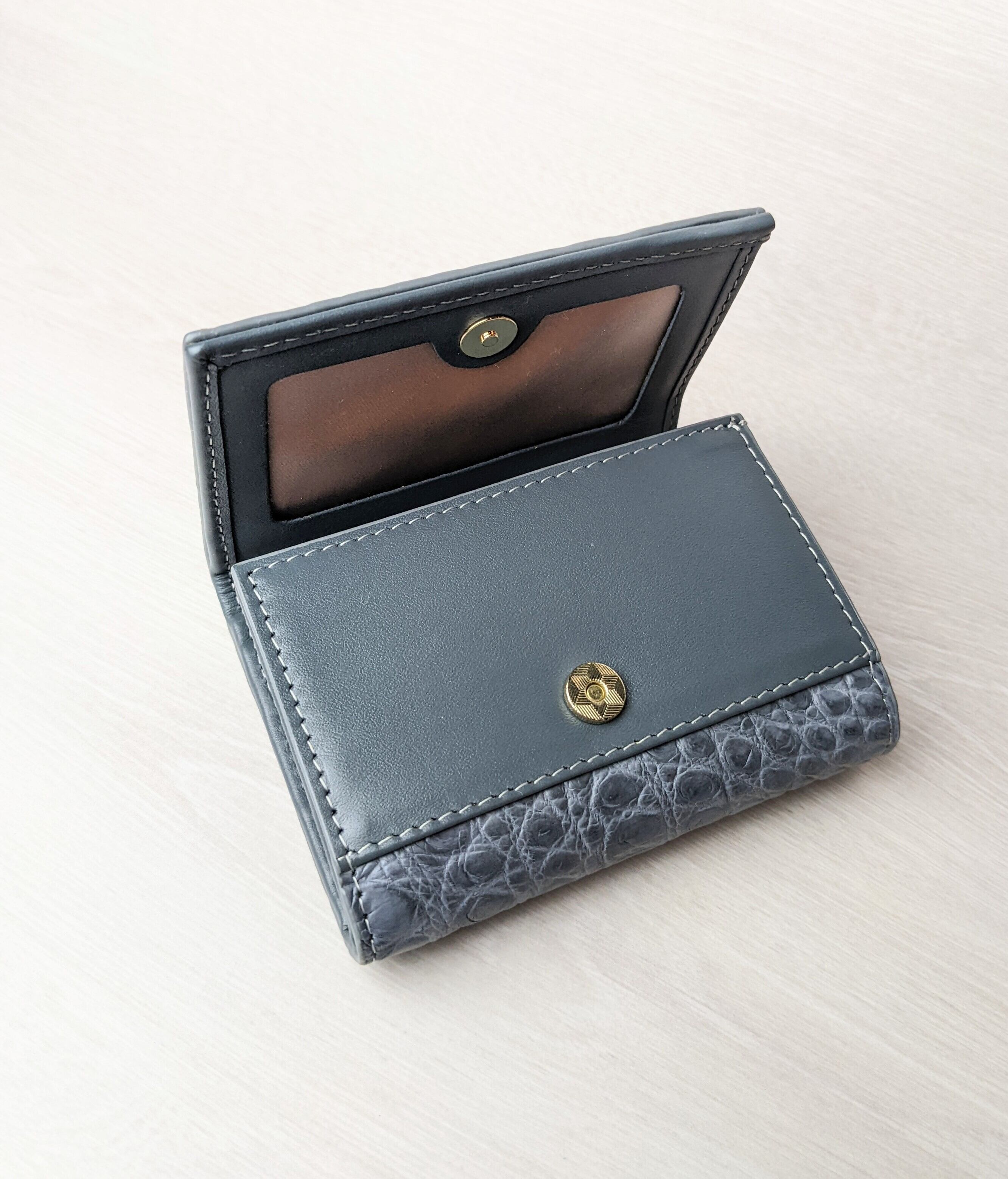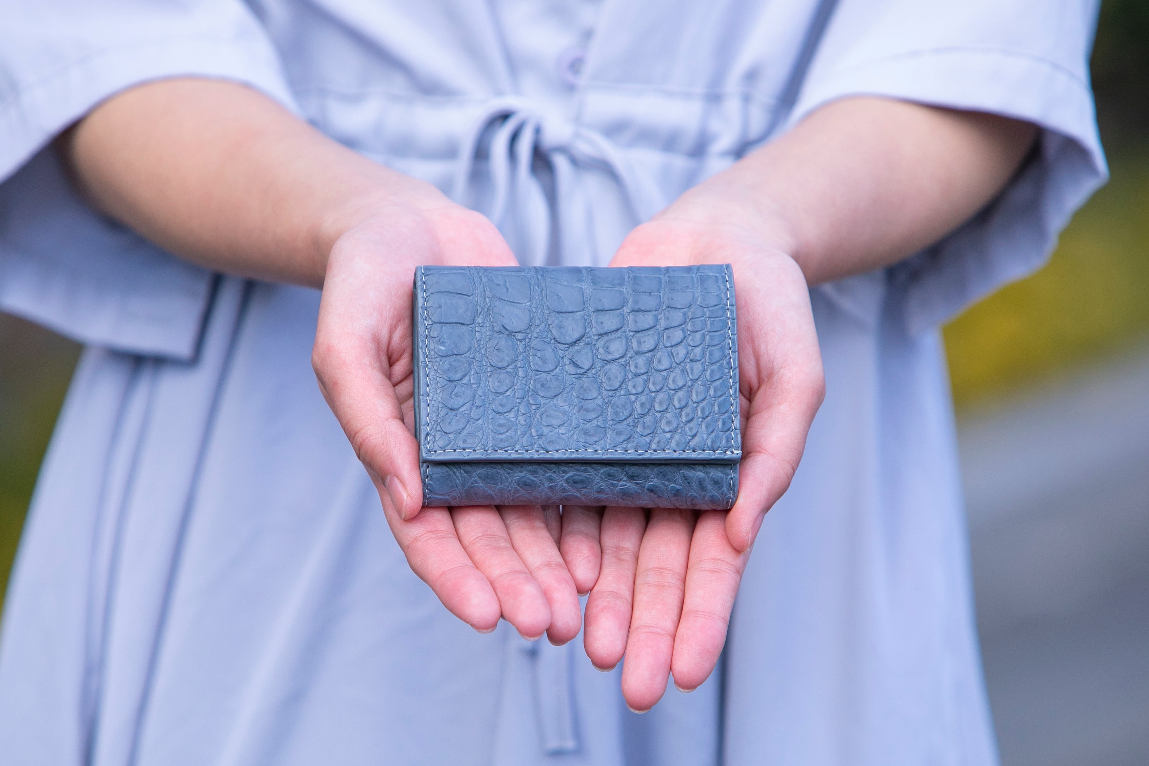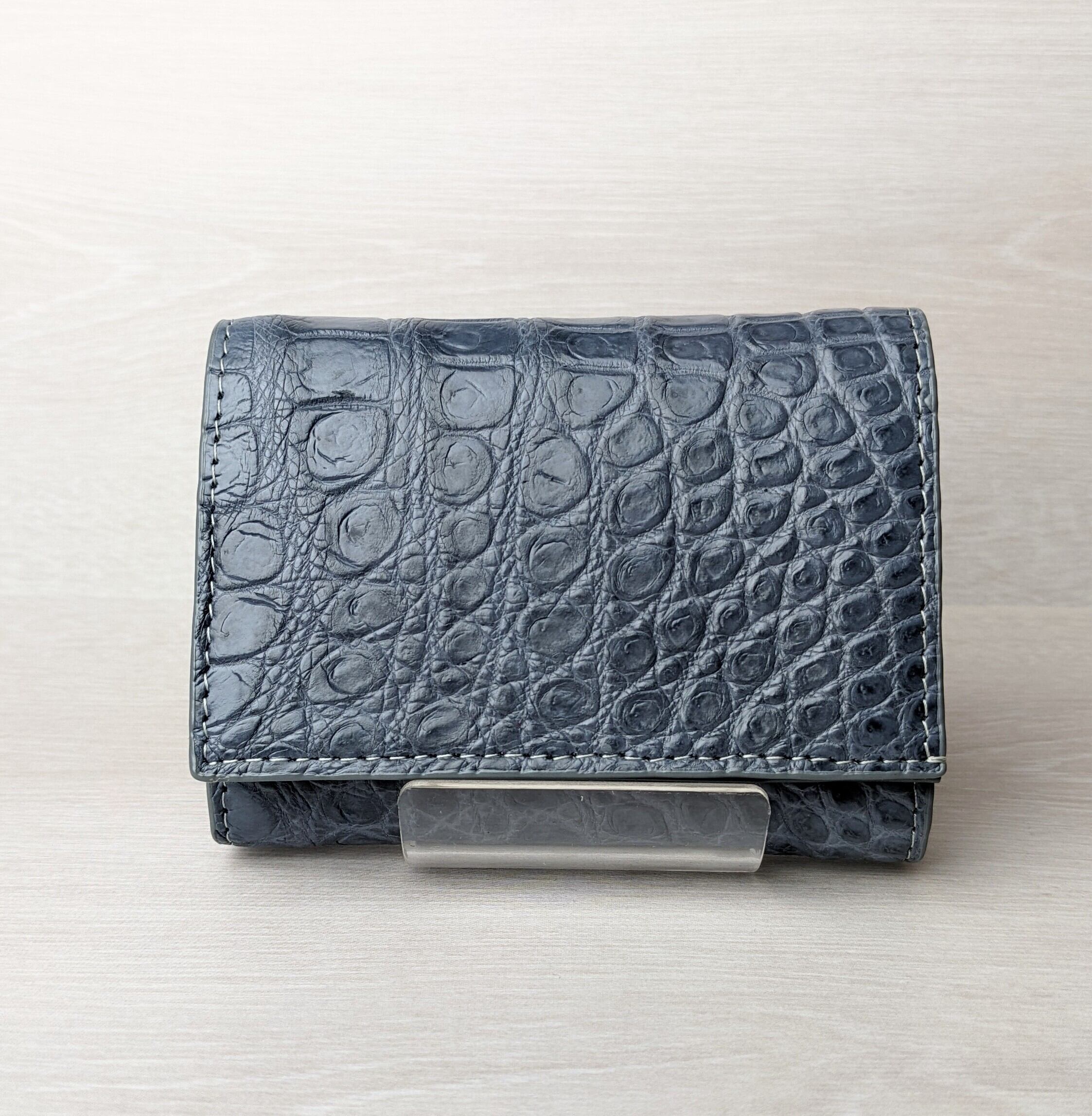 「黒では重い、でもその他では軽い」そんなあなたへ【知的で都会的なグレー】クロコダイル 三つ折り財布 グレー|ミニ財布 メンズ レディース コンパクト 小さい 高級 本革 鰐革 スモールウォレット 職人 ハンドメイド 本物保証 プレゼント 10000097