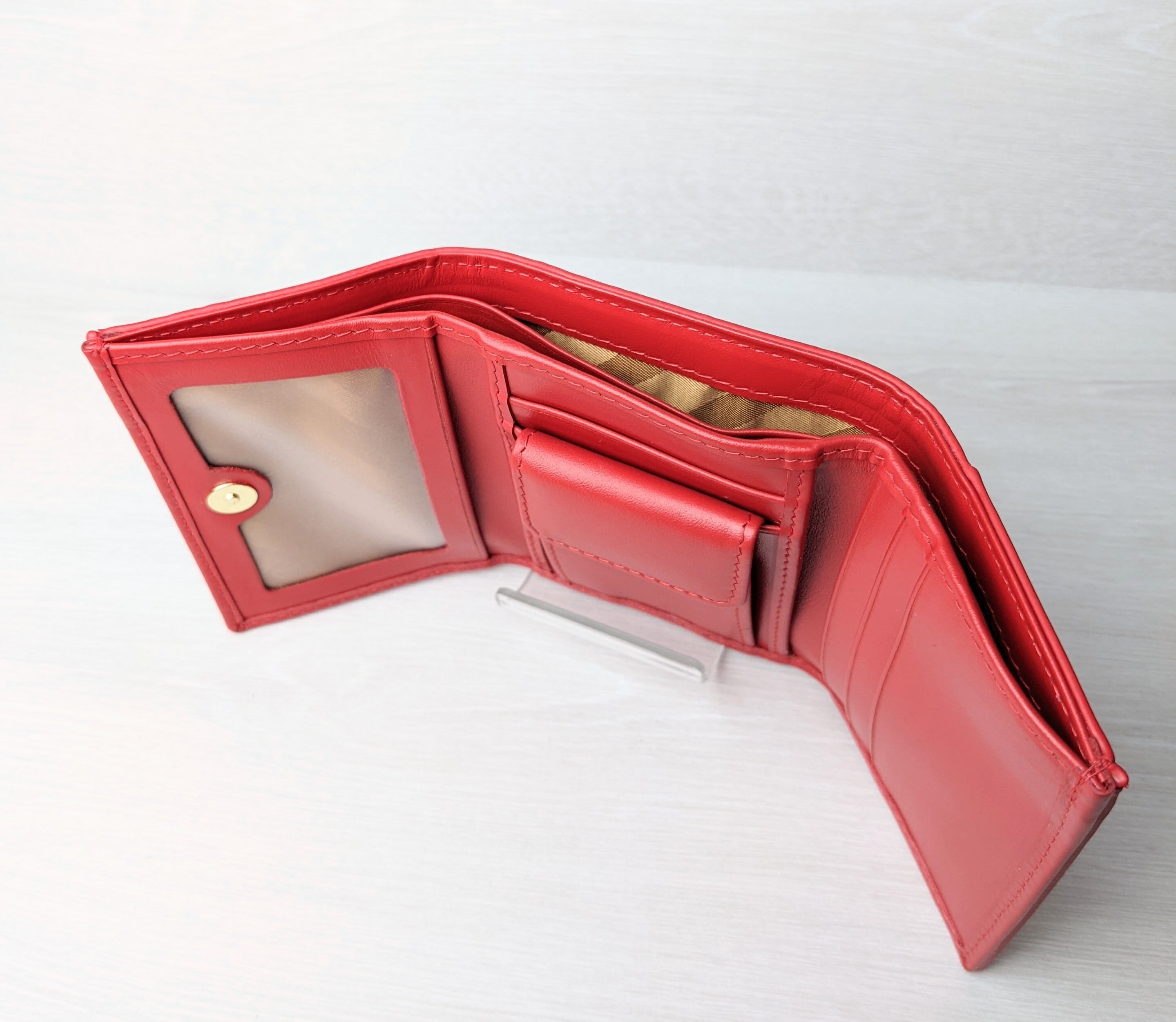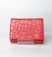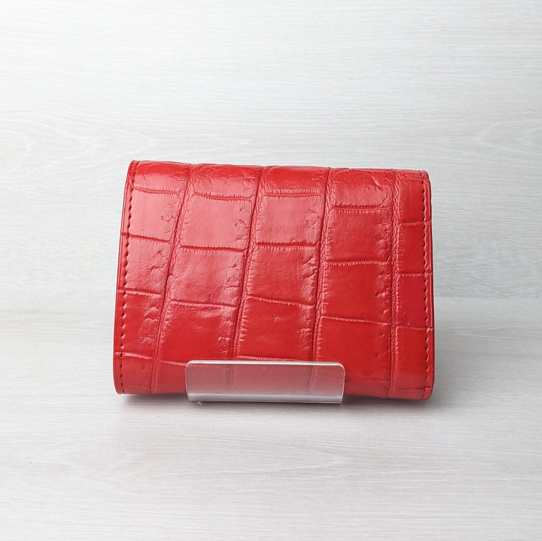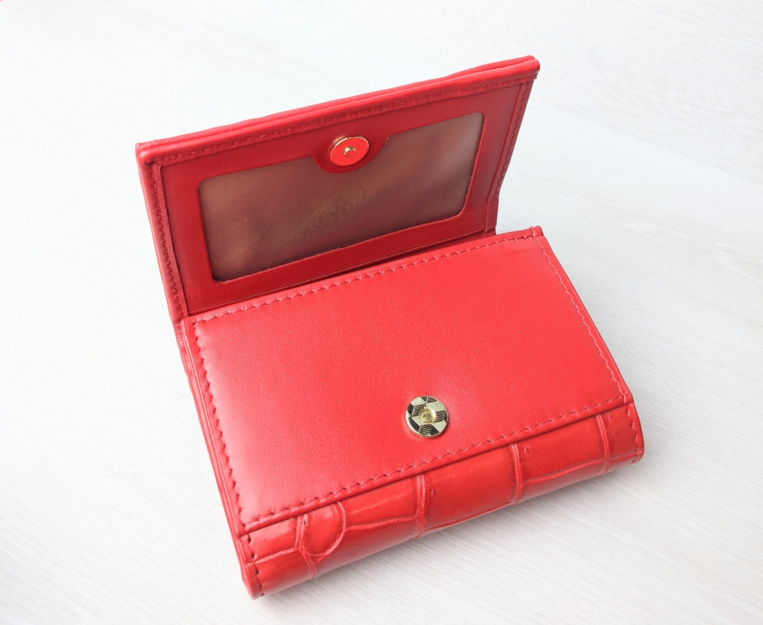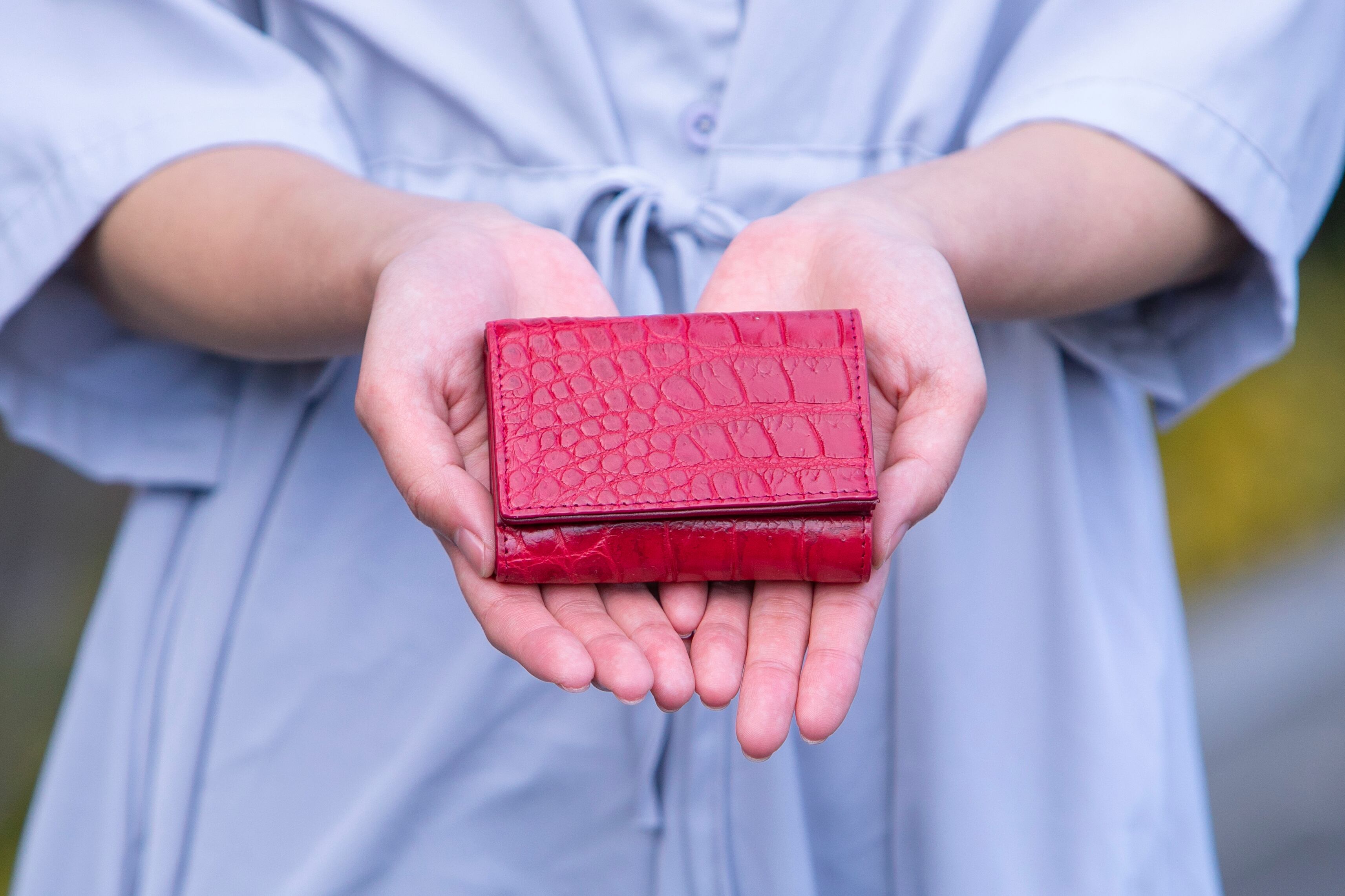 【気分が上がる魔法の赤】クロコダイル 三つ折り財布 レッド|ミニバッグに収まる贅沢 本革 ミニ財布 わに革 レザー レディース 一枚革 ハンドメイド 本物保証 赤 ギフト プレゼント クリスマス 父の日 母の日 10000209