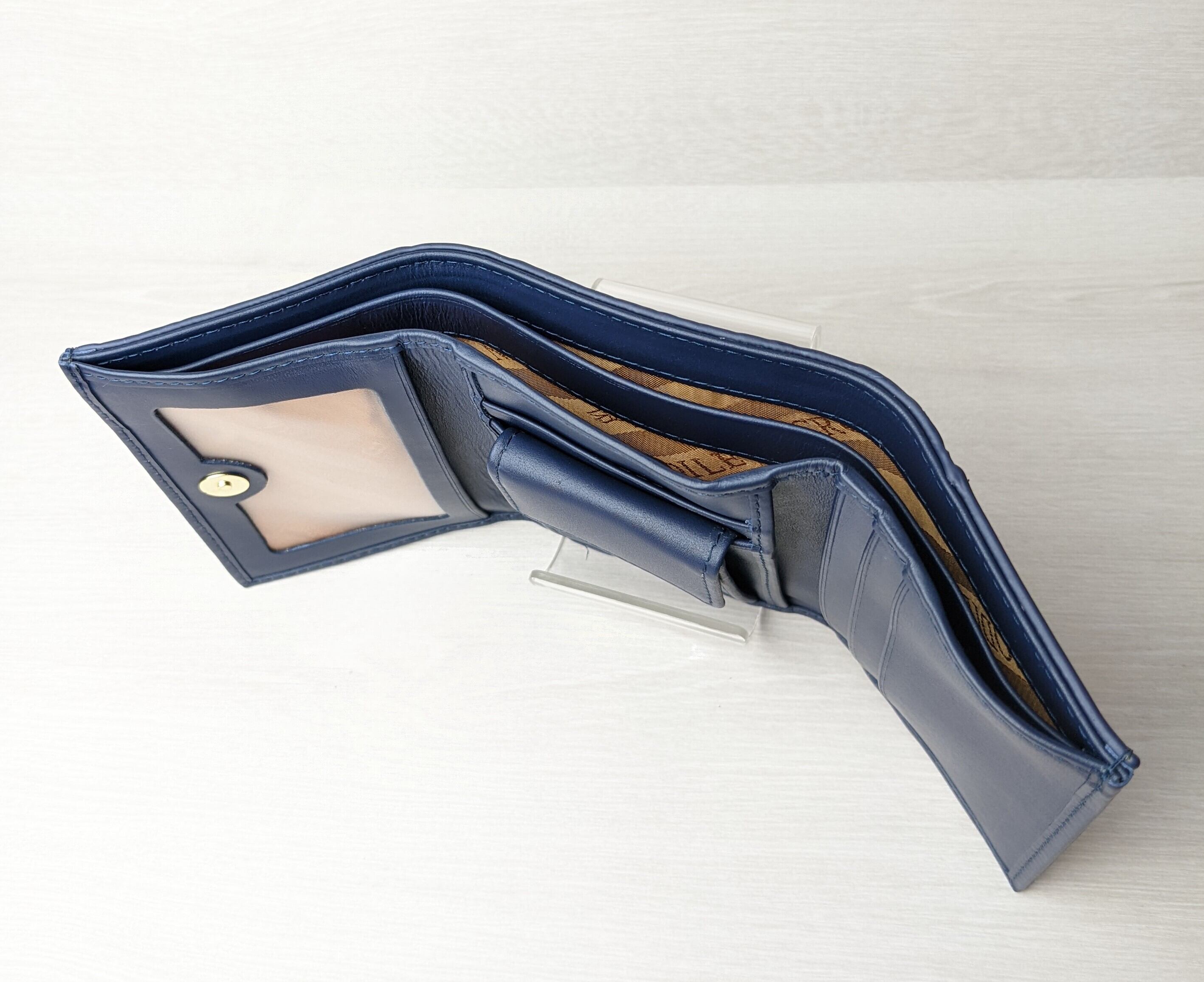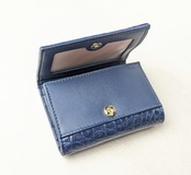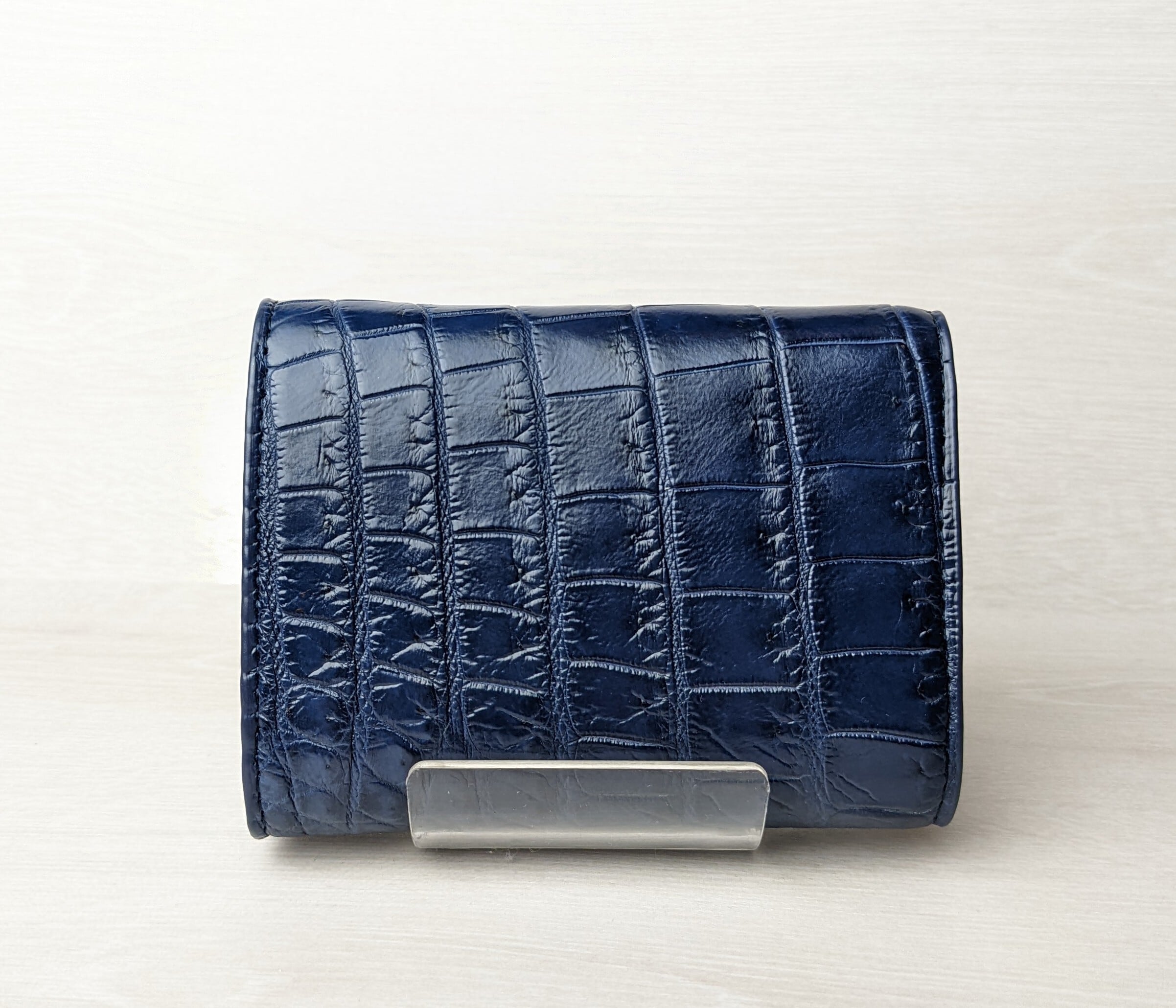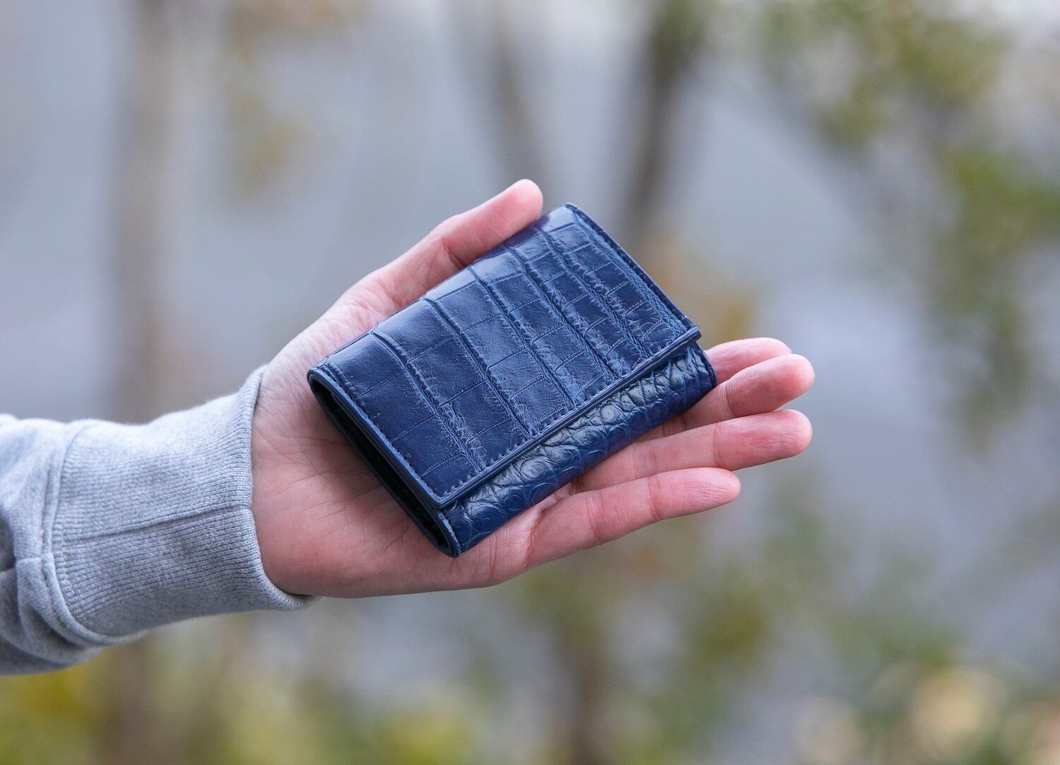 定番色では物足りないあなたへ【知的なネイビーで差がつく】クロコダイル 三つ折り財布 |ミニ財布 メンズ コンパクト 高級 本革 鰐革 職人 ハンドメイド 本物保証 ビジネス 小さい財布 レディース ギフト プレゼント 個性派 10000098