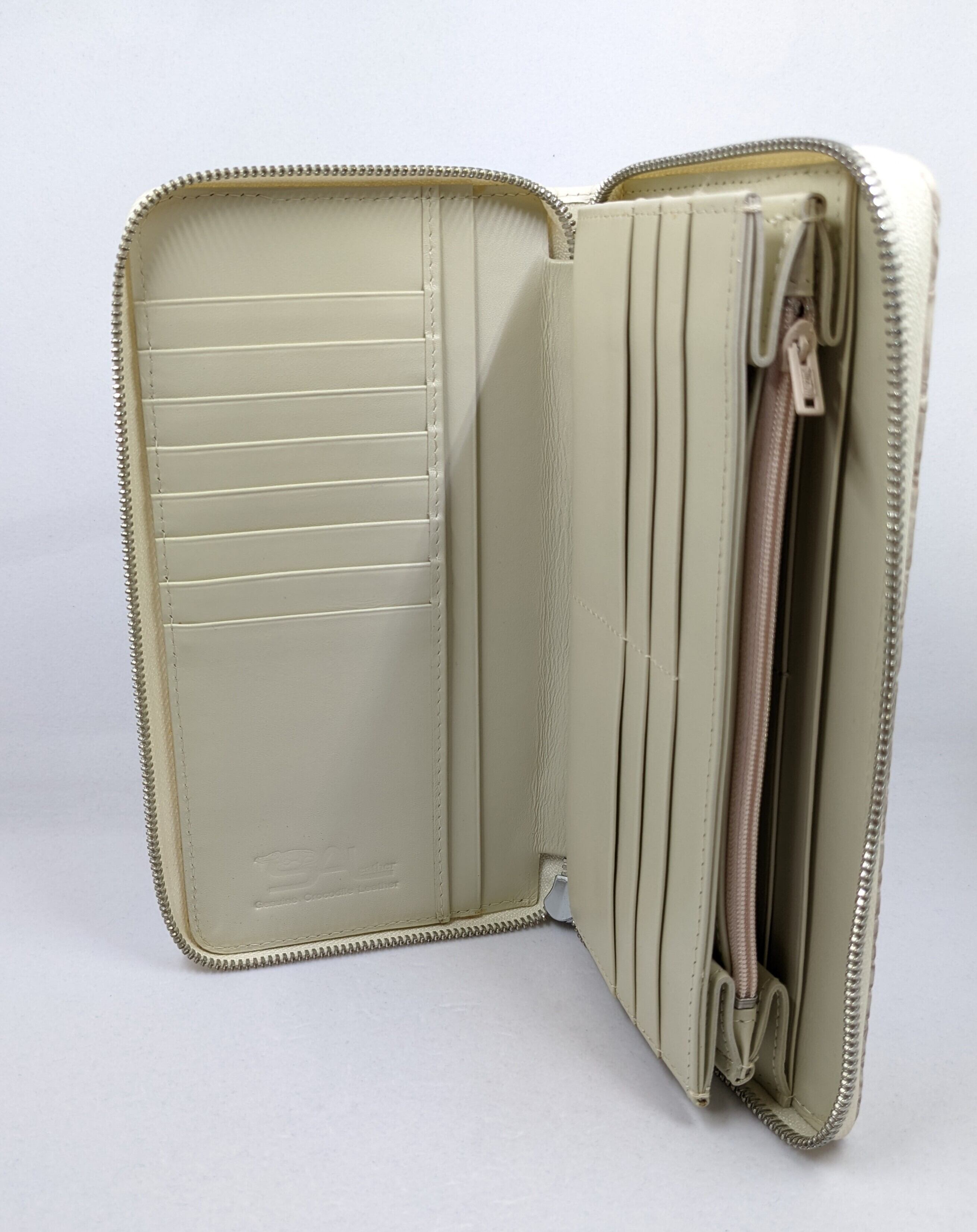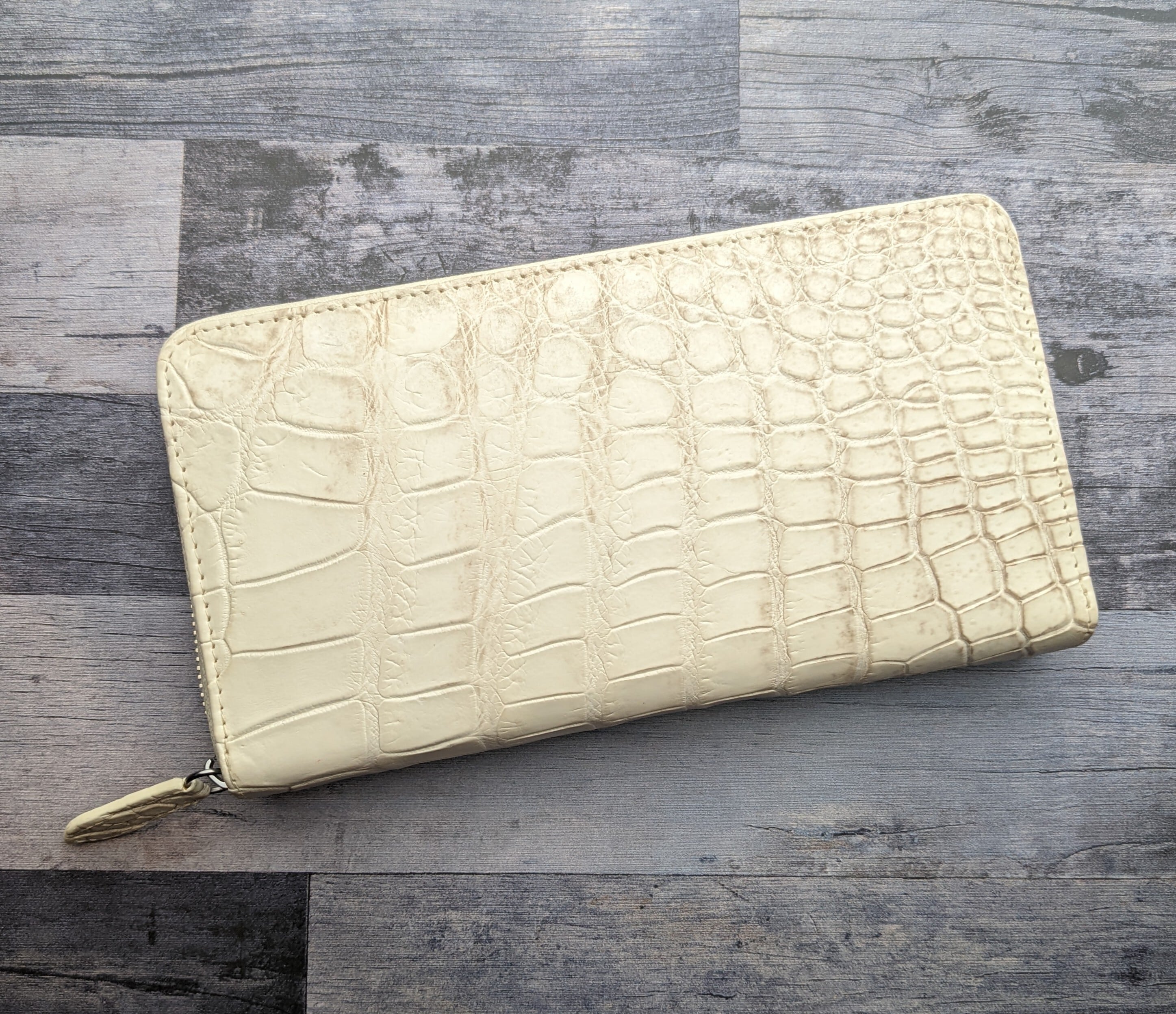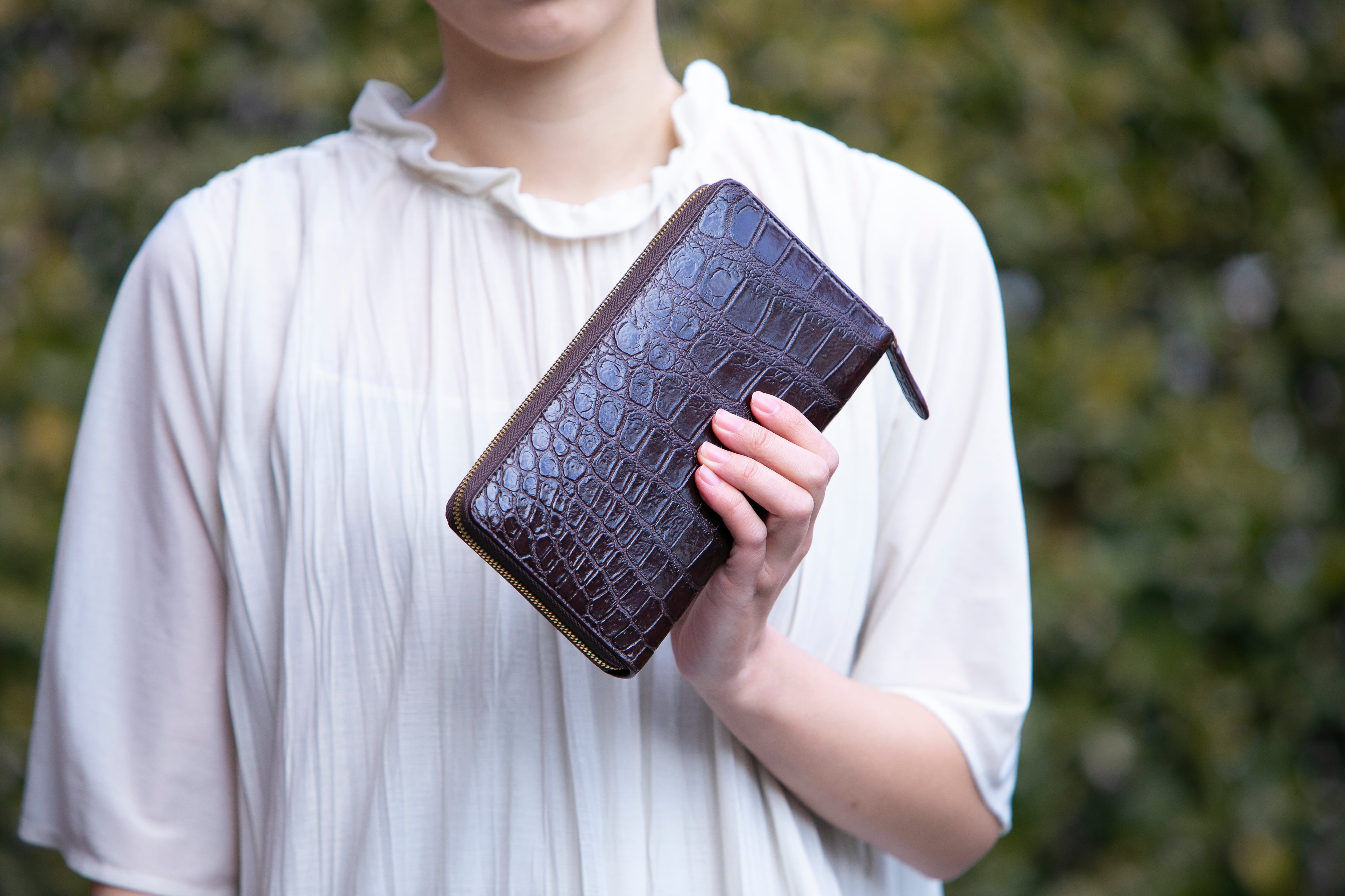 クロコダイル一枚革を贅沢に使用した人気のラウンドファスナータイプの長財布です。