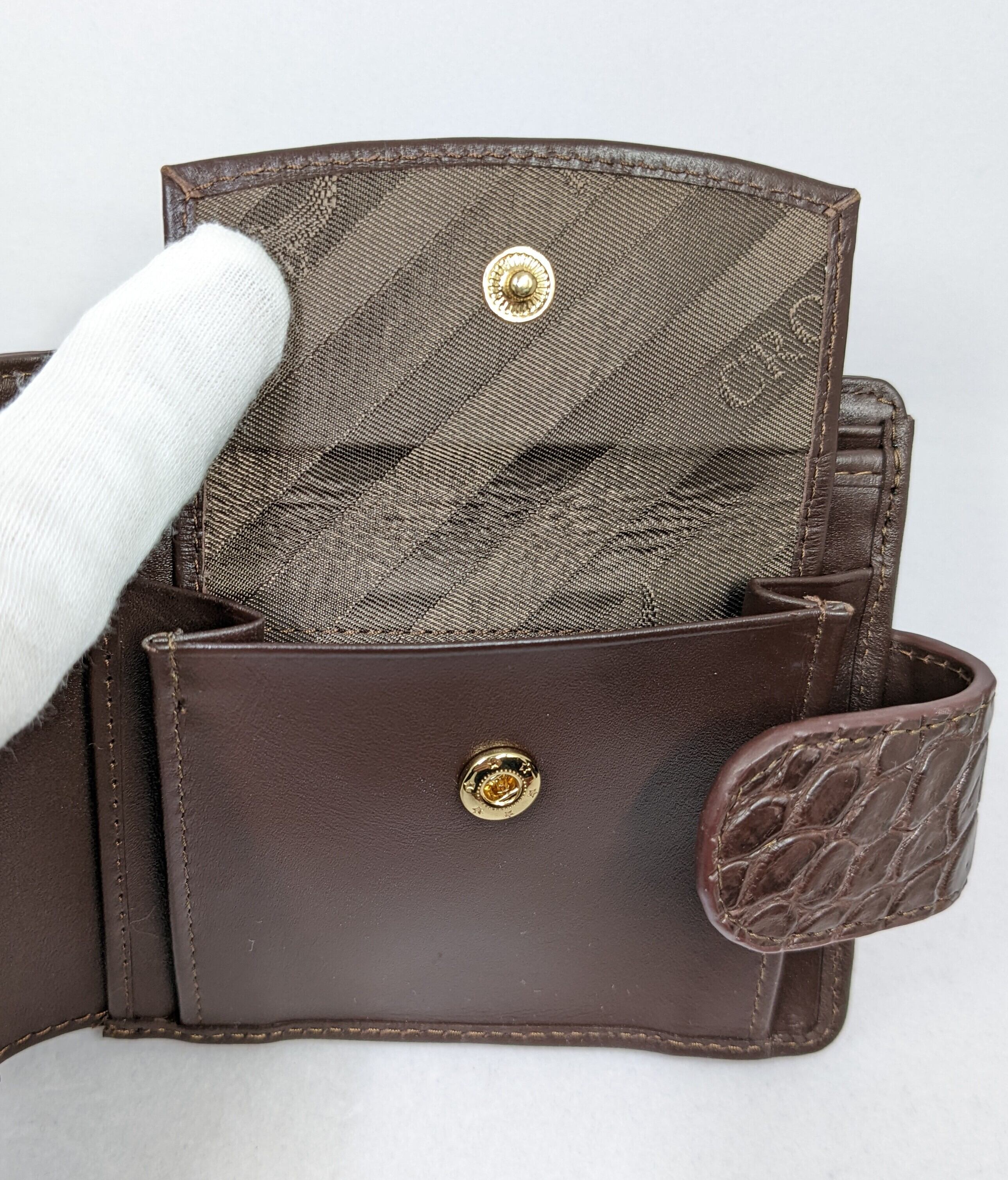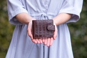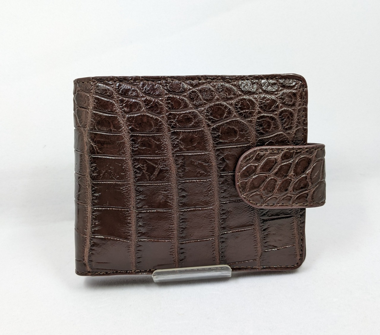 クロコダイル 二つ折り財布 ダークブラウン 高級一枚革 ワニ革 コンパクト ミニ 小さい財布 メンズ レディース 本革 ハンドメイド 職人技 独自ルート 本物保証 「安っぽい財布は卒業」本物志向の方へ 1645450454