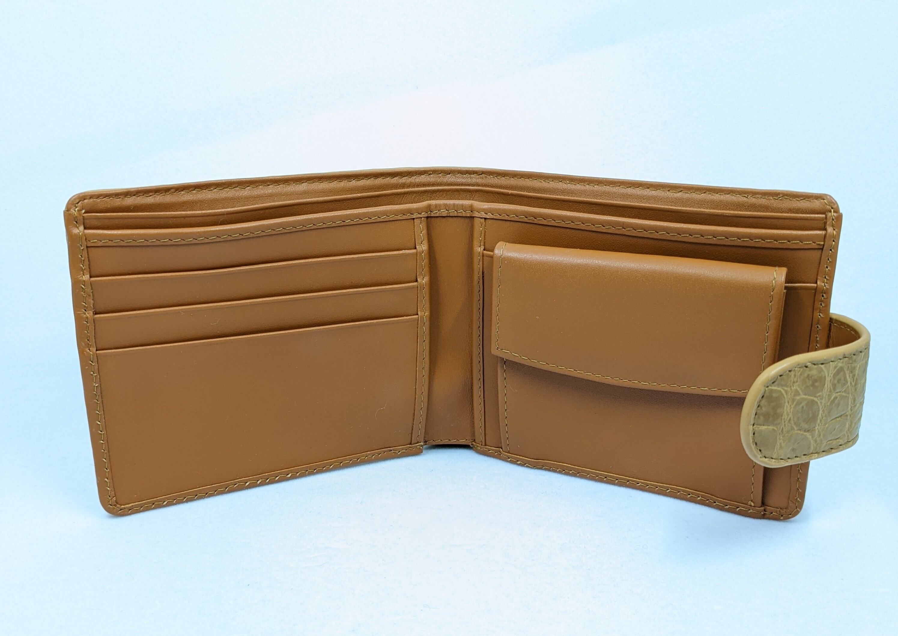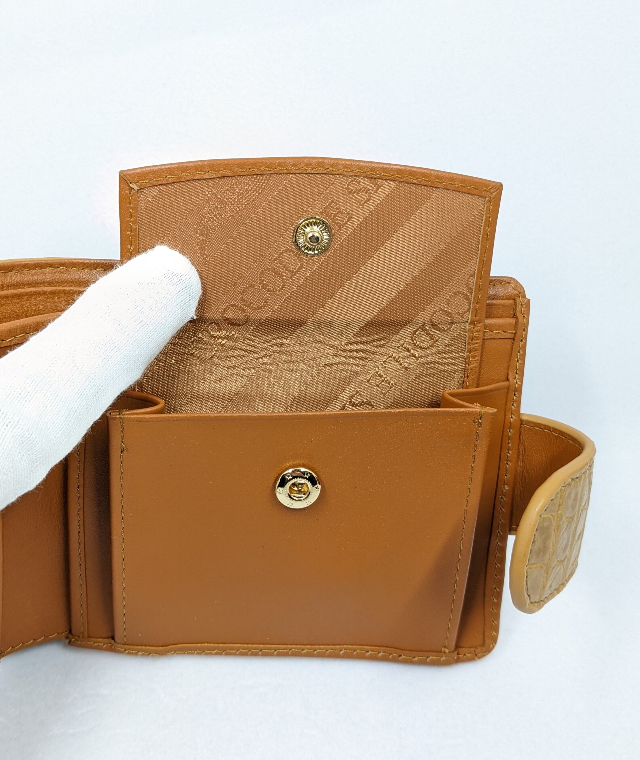 クロコダイル一枚革を使用した二つ折りウォレット