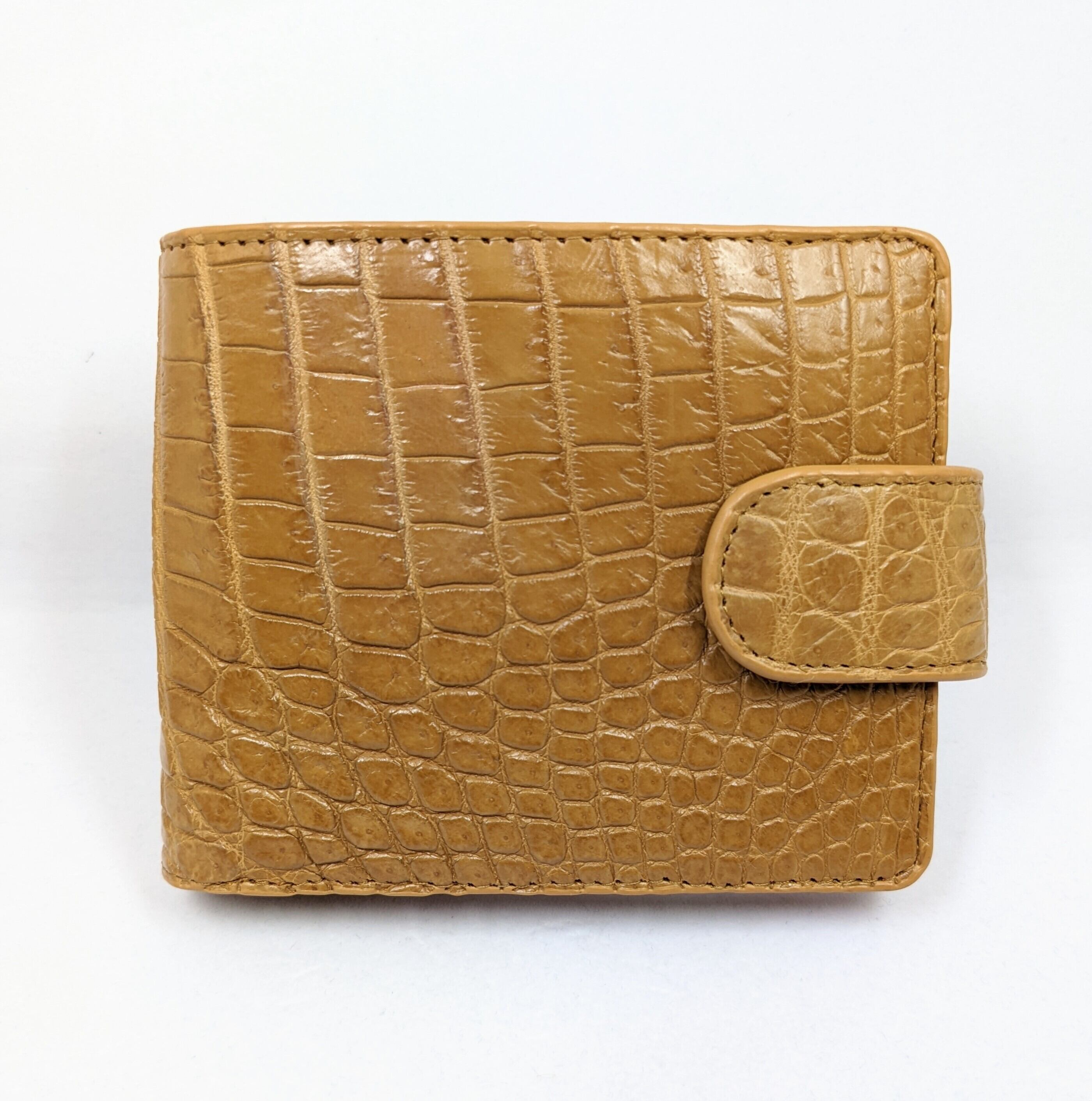 【もう、財布の厚みに悩まない】本物クロコダイル革の圧倒的な高級感とコンパクトさを両立。スナップボタンで中身も安心な二つ折りミニ財布。メンズ・レディースを問わない逸品。ハンドメイド 本物保証(マスタードベージュ)ギフト プレゼント 10000104