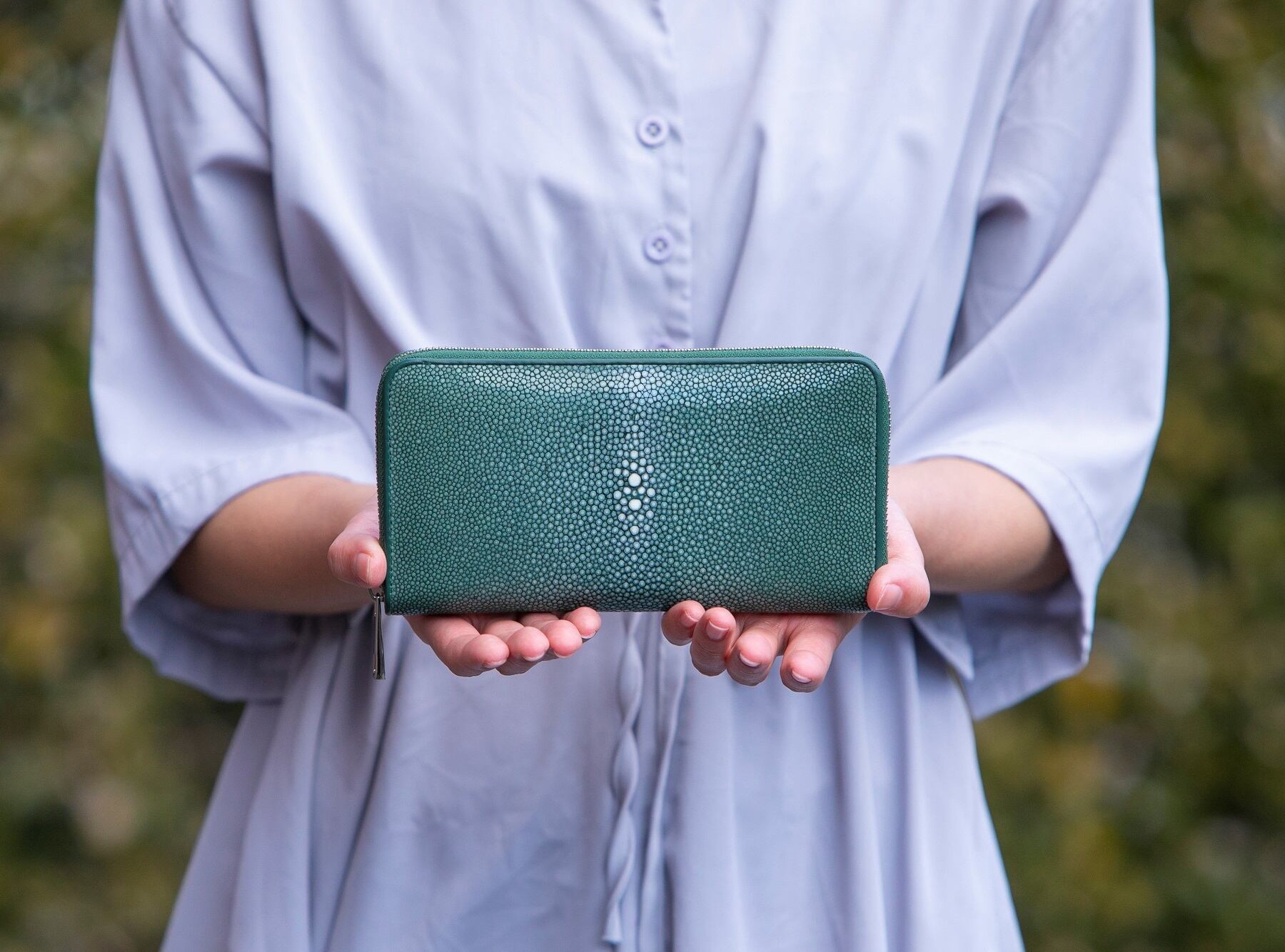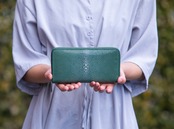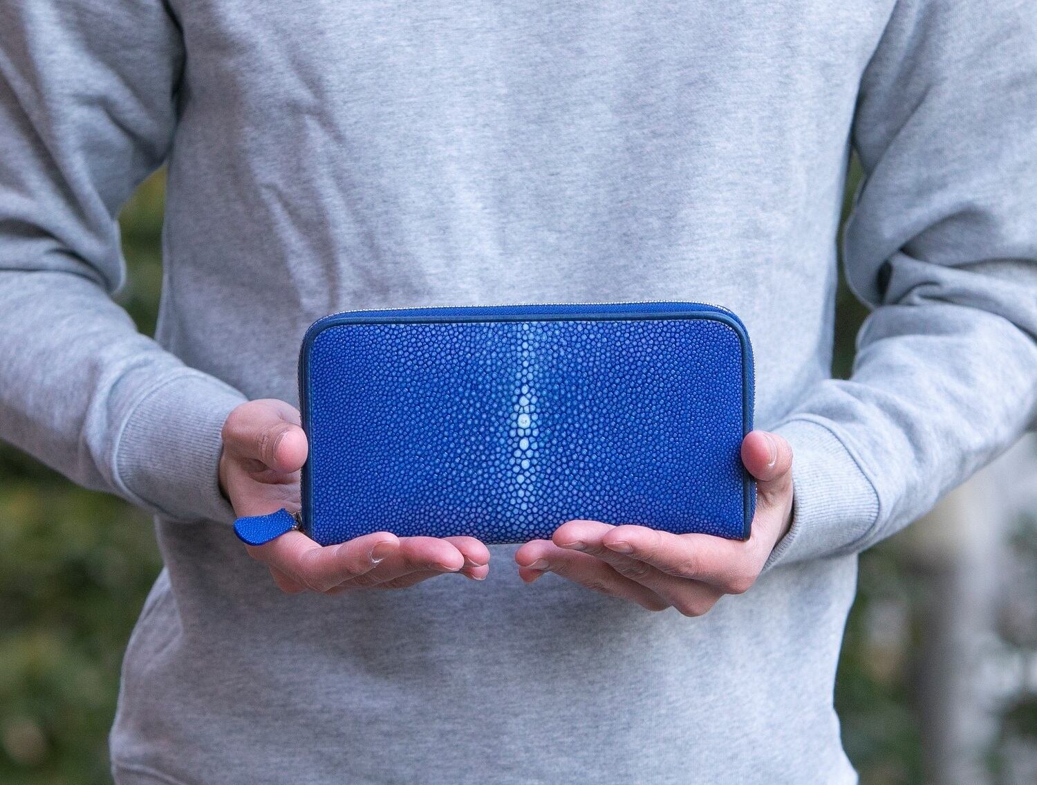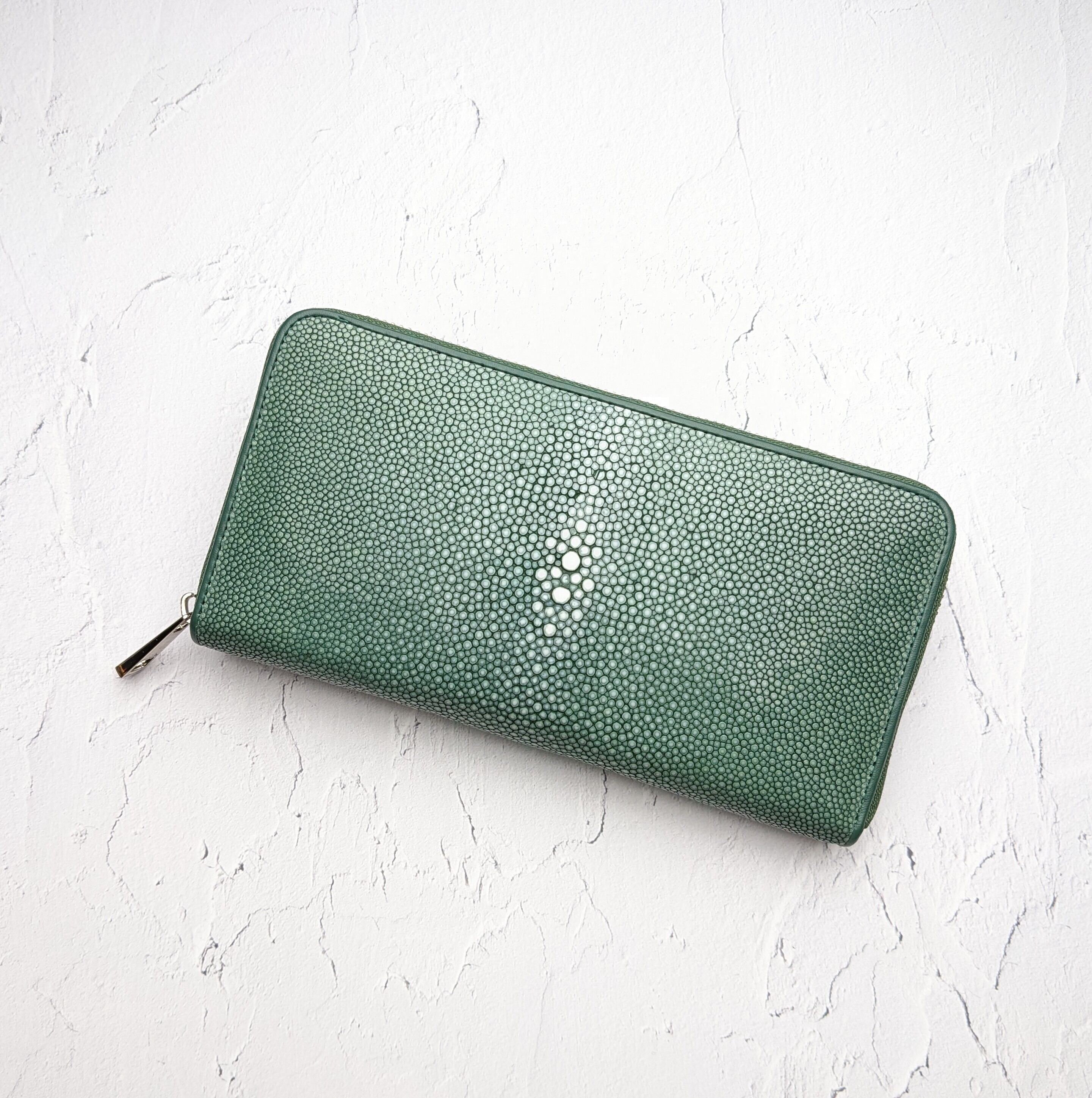 『海の宝石』と呼ばれ非常に美しいエイ革を使用したラウンドファスナー長財布です。