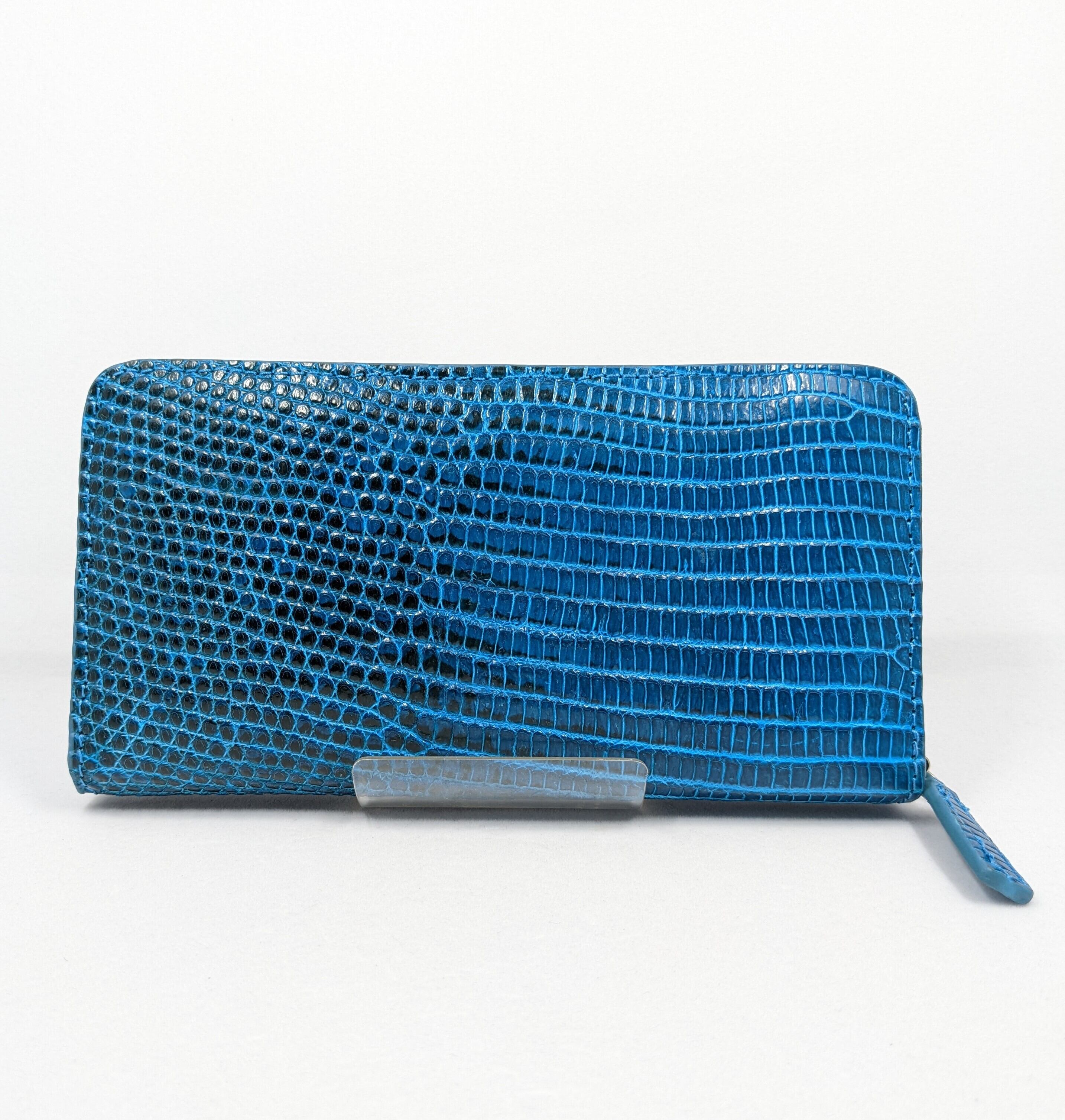 エキゾチックレザーの代表格であるリザード(トカゲ)の革を使用したラウンドファスナー財布。