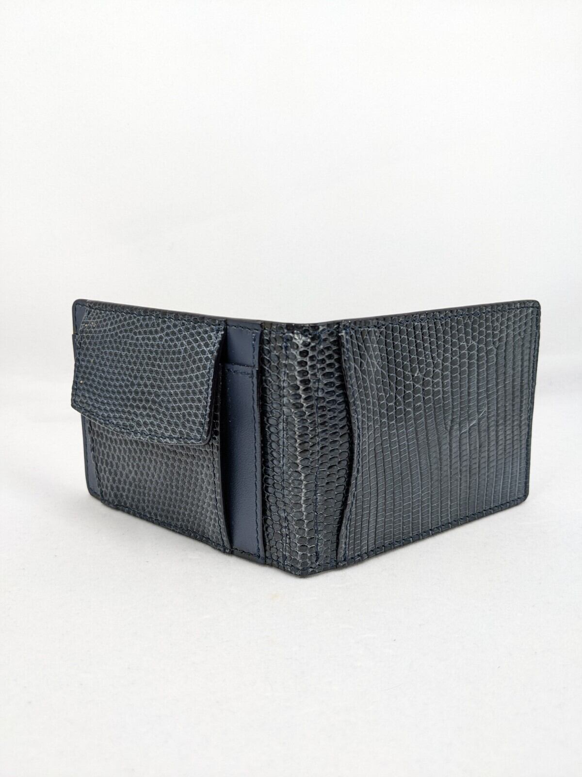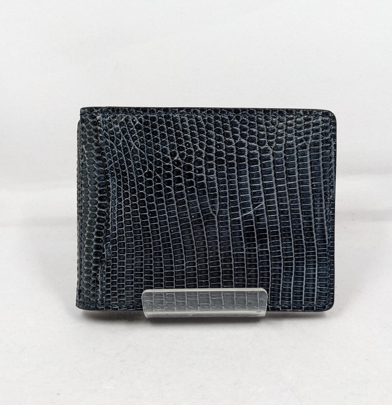 【アウトレット】リザード マネークリップウォレット ダークネイビー|分厚い財布は卒業 スマートな大人の選択 本革トカゲ革 二つ折り財布 メンズ 訳アリ価格 職人 ハンドメイド 本物保証 ギフト プレゼント 父の日 10000226